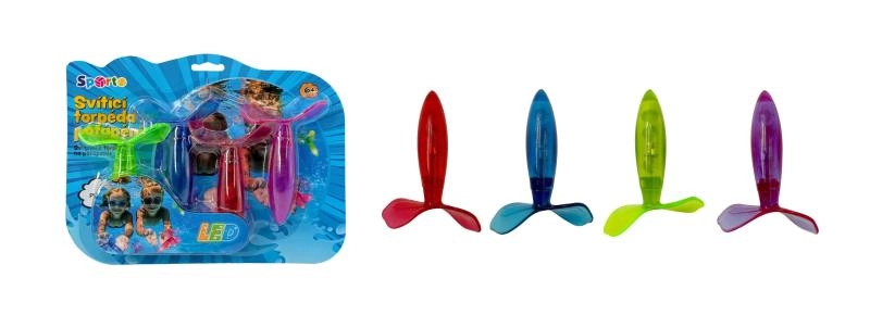 Odkrijte svetlobni šov pod gladino! Svetleča torpeda SPORTO so zasnovana z aerodinamično obliko, da po odmetu ne potonejo na dno, temveč gladko drsijo skozi vodo. Svetlobni učinek ustvari v vodi privlačno sled, ki povečuje zabavo in orientacijo med igro.