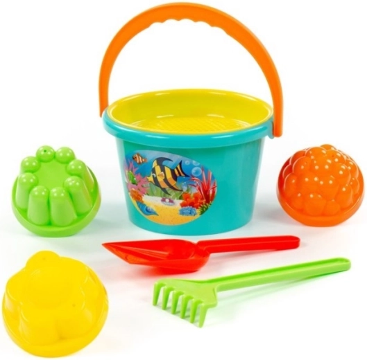 Praktičen otroški komplet za pesek z vedrom, lopatko, grabljicami in modelčki spodbuja domišljijo pri igri na plaži in v peskovniku. Zaradi lahke in trpežne plastike je idealen za majhne roke in enostavno prenašanje. Komplet je na voljo v več barvnih izvedbah, izbira konkretne barve ni možna. Uživajte v gradnji gradov, kopanju in oblikovanju peska s kompletom, ki podpira ustvarjalnost, motoriko in zunanje igre v enem.