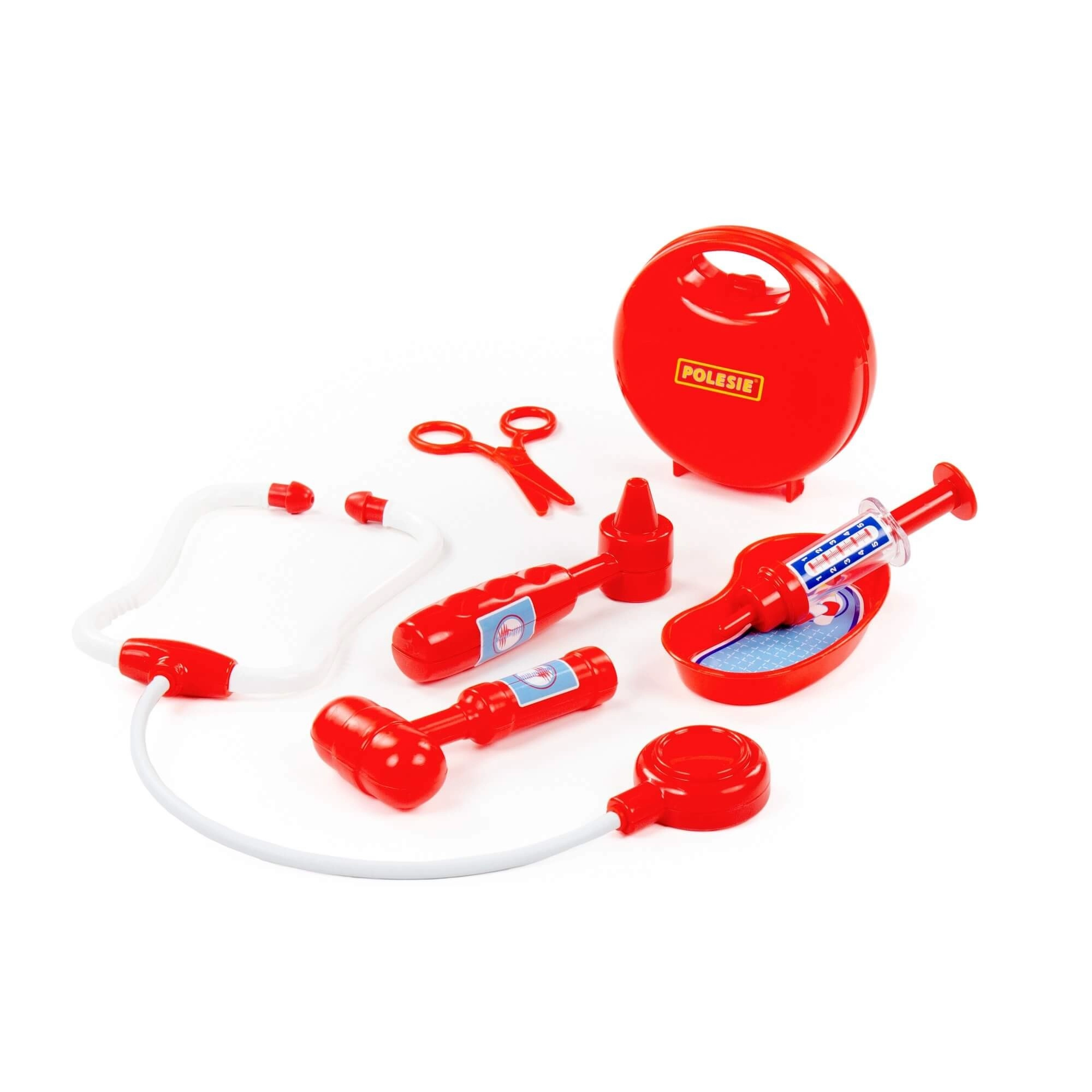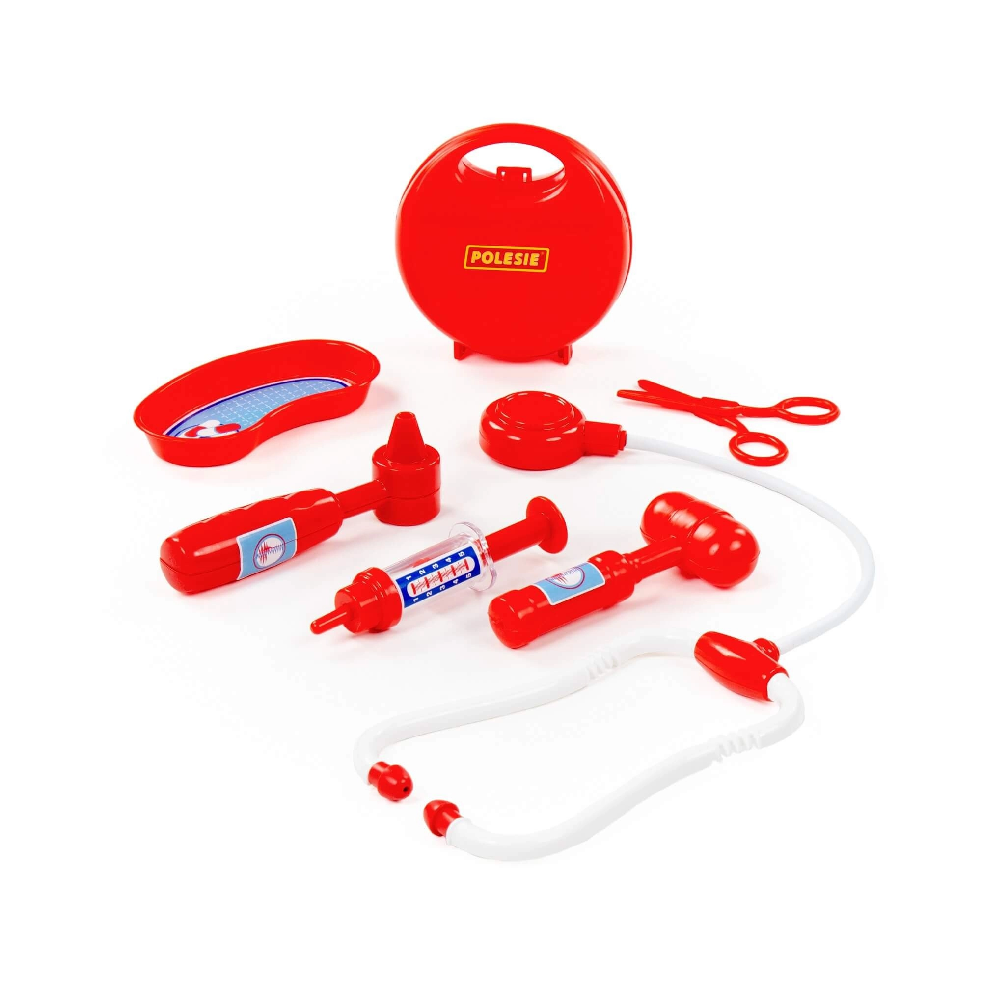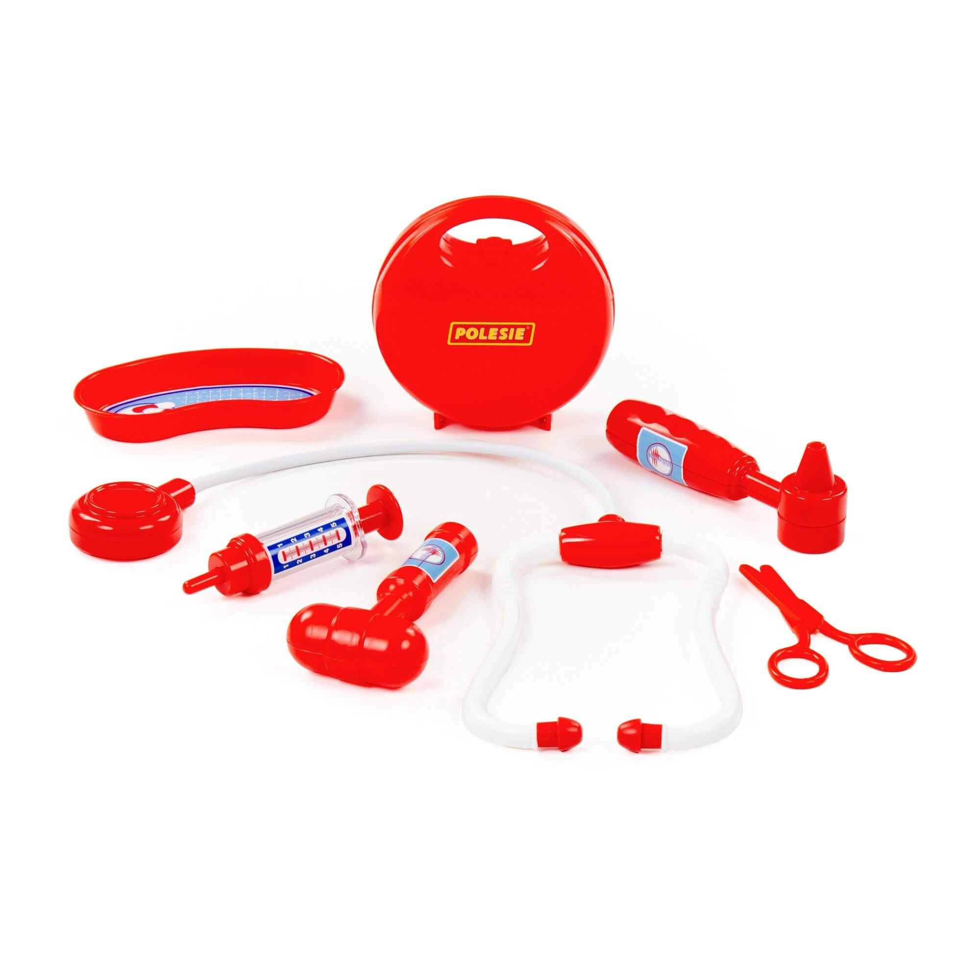 Zabaven in varen otroški zdravniški komplet s praktičnim kovčkom vsebuje vse potrebno za prvo »pregledovanje« – stetoskop, injekcijsko brizgo, otoskop, refleksno kladivce, škarje in posodico – ledvico. Spodbuja ustvarjalno igro vlog, razvija fino motoriko in komunikacijo ter uči otroke, da se ne bojijo zdravnika.