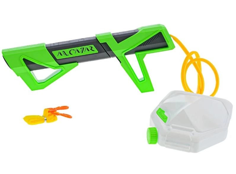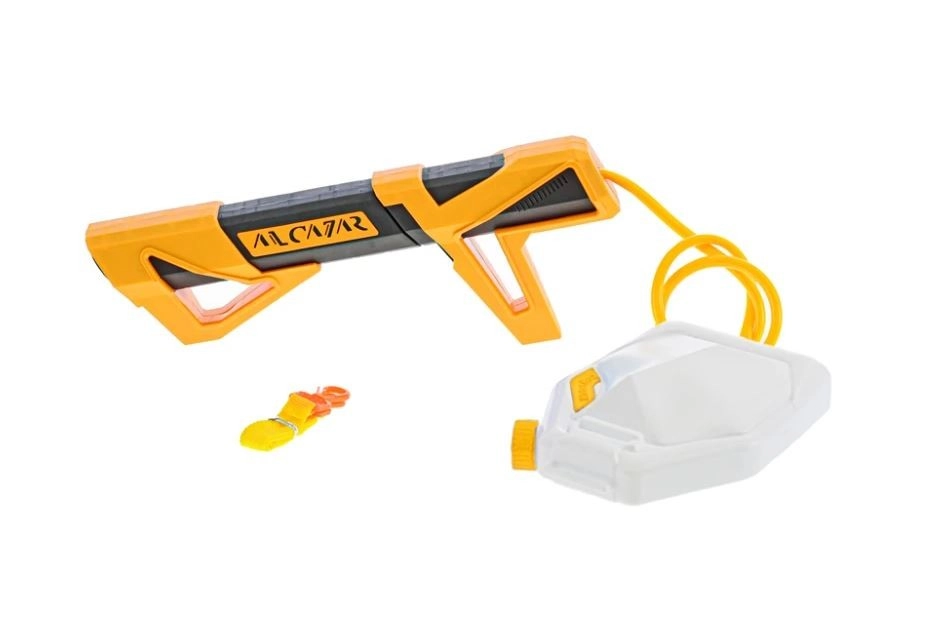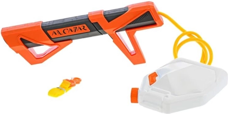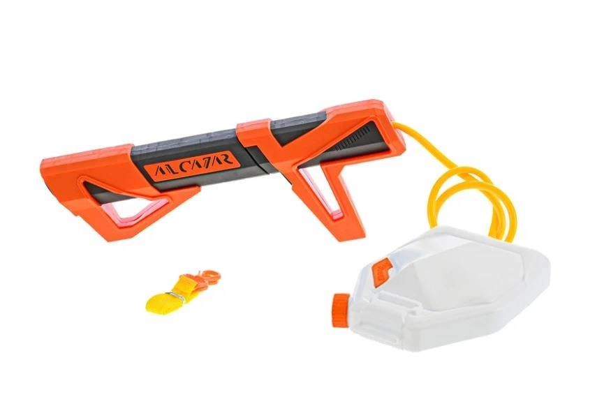 Ta vodna pištola z zunanjim rezervoarjem prinaša daljšo zabavo brez pogostega dolivanja. Dovolj je, da rezervoar napolnite z vodo, ga pritrdite s pasom in akcija se lahko začne. Ergonomska oblika in nizka teža olajšata držanje tudi mlajšim otrokom.
