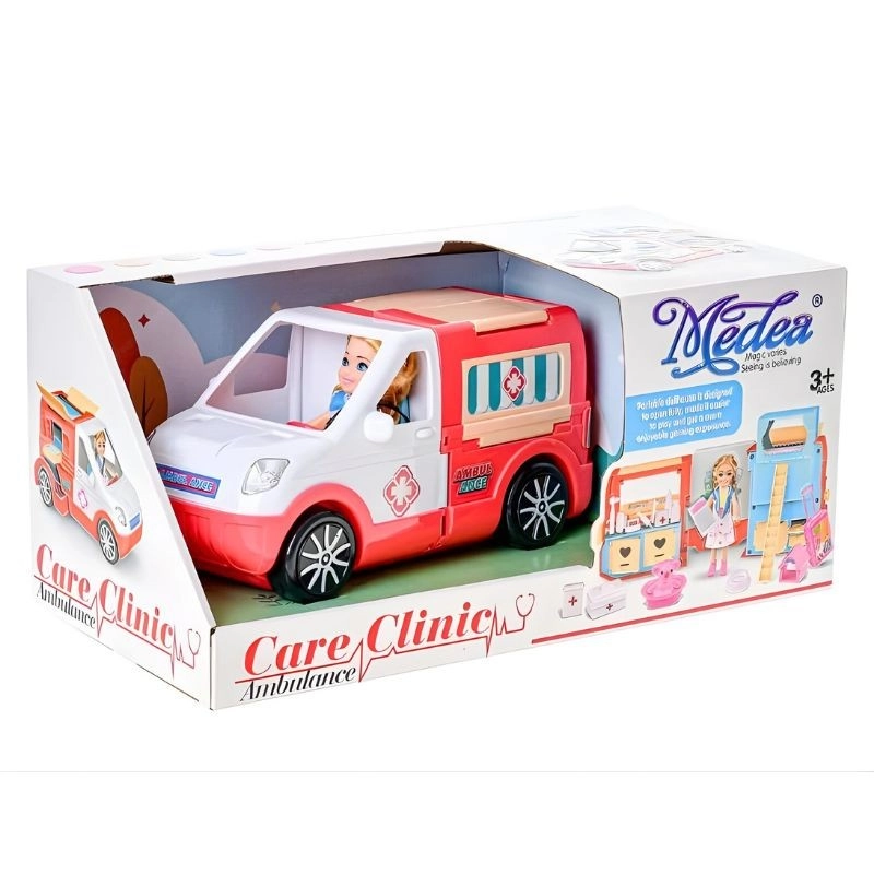 Zložljivo otroško reševalno vozilo dolžine 22 cm prinaša svet reševanja in nege v enem setu. Vsebuje 14 cm veliko punčko, medicinske pripomočke in simpatično živalco za realistično igro reševalcev. Odpiralni deli vozila in bogati dodatki spodbujajo kreativno igro, razvoj empatije in fino motoriko pri otrocih od 3 let dalje.