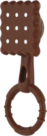 Izviren »piškotov« dizajn vzbuja radovednost, mehak in prožen silikon je prijeten na dotik in nežen do občutljivih dlesni. Nežno rožljanje podpira zaznavanje zvoka brez motečega hrupa. Teksturirana površina pomaga pri masaži dlesni in prispeva k naravnemu pomirjanju dojenčka.
