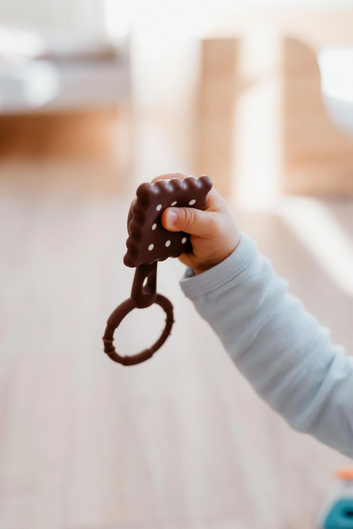 Iščete prvo igračo za svojega dojenčka, ki ga bo pritegnila in hkrati podpirala njegov razvoj? Silikonska ropotuljica in grizalo v obliki piškota nudi varno olajšanje ob izraščanju zobkov, enostaven oprijem in senzorično stimulacijo v enem. Zaradi lahke zasnove jo otrok zlahka prime in se lahko z njo samostojno igra doma ali na poti.
