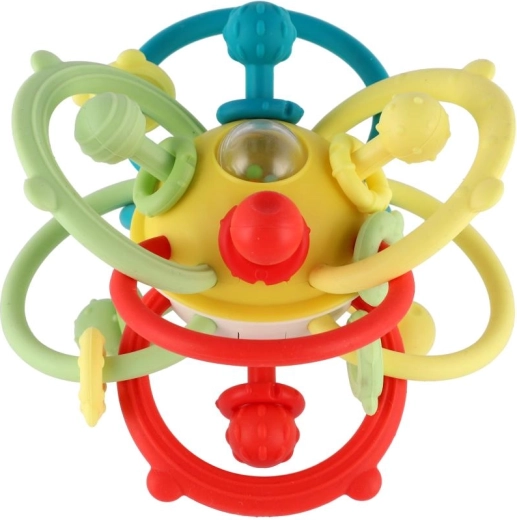 Prosojni osrednji del z barvnimi kroglicami ustvarja nežen zvok, ki podpira slušno zaznavanje in motivira k aktivnemu gibanju – stresanju, prenašanju iz roke v roko in kotaljenju po podlagi. Igrača je zasnovana za razvoj fine motorike, koordinacije oko–roka in senzorično stimulacijo od 6 mesecev.