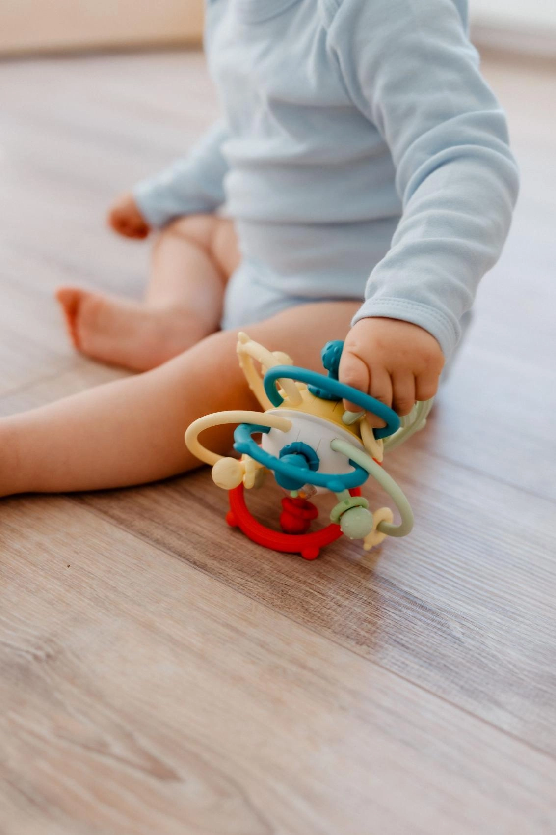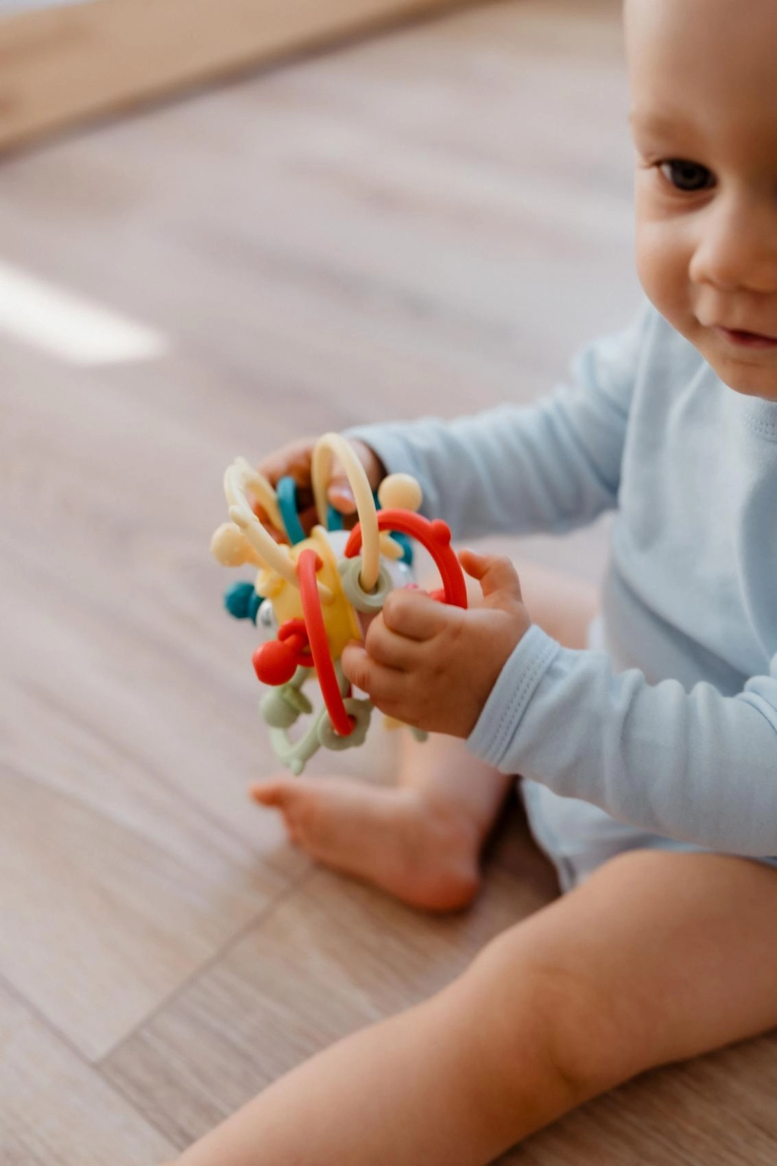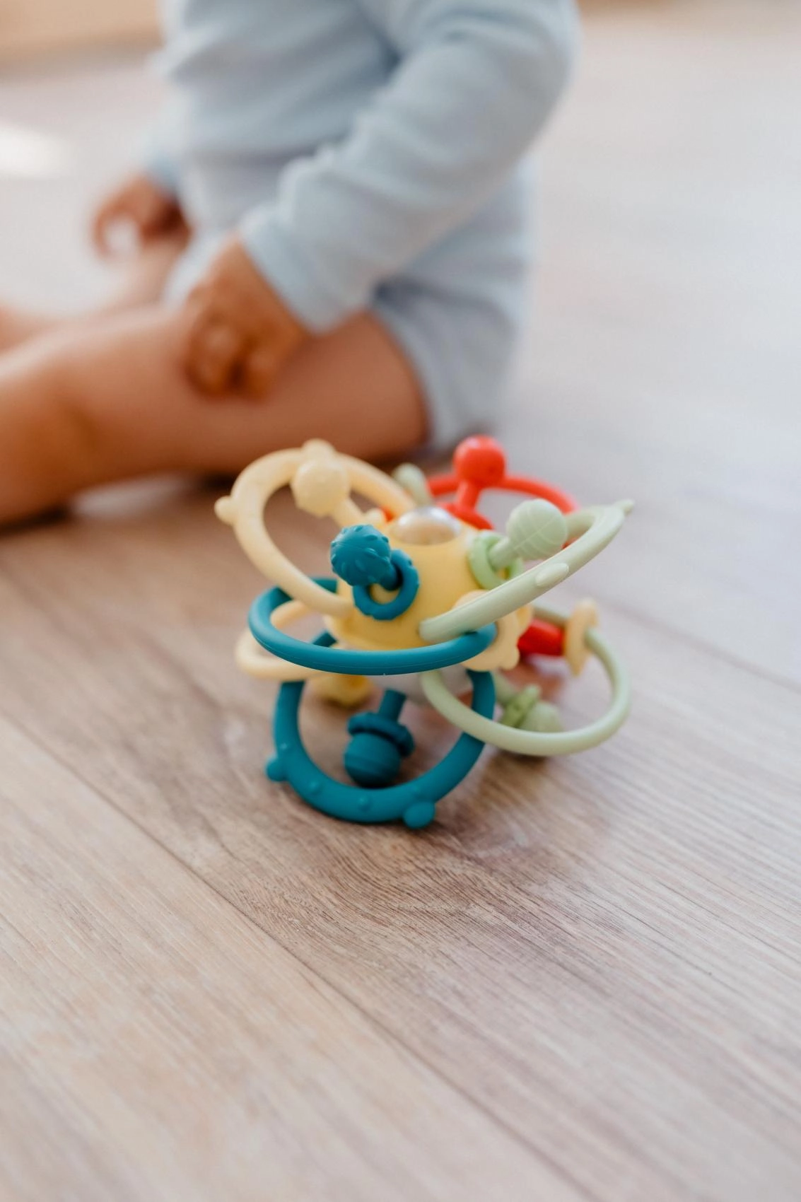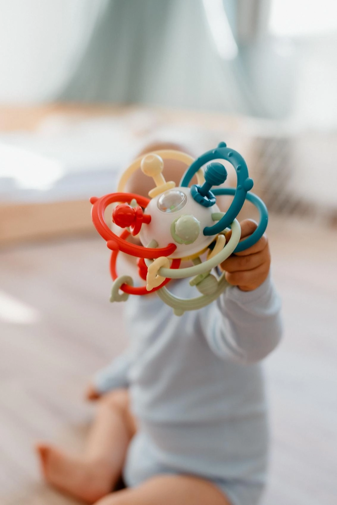 Priljubljena igrača za najmlajše združuje ragljico in grizalo v enem. Prepleteni loki omogočajo udoben oprijem malih ročic, raznolike teksture vabijo k raziskovanju, varni materiali pa pomirjajo dlesni pri grizenju. Zaradi lahke zasnove je idealna za doma in na poti.