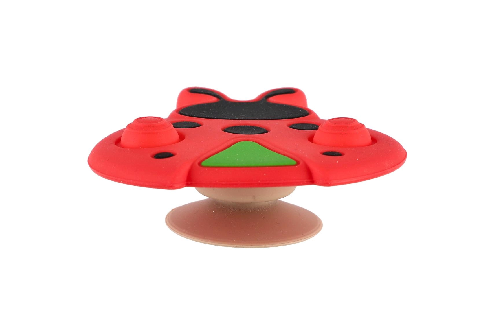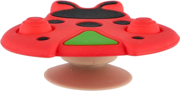 Ta senzorična igrača v obliki pikapolonice je idealna za prve korake pri odkrivanju sveta. Zaradi kombinacije mehkega silikona in trde plastike je prijetna na dotik, varna in kos vsakodnevni uporabi. Prisesek omogoča, da igračo preprosto pritrdite na mizo, jedilni stolček ali kad, zato ostane na mestu in jo otrok lahko udobno raziskuje.