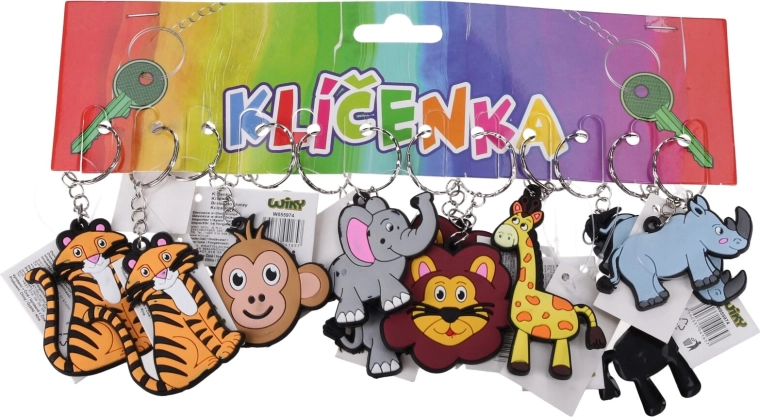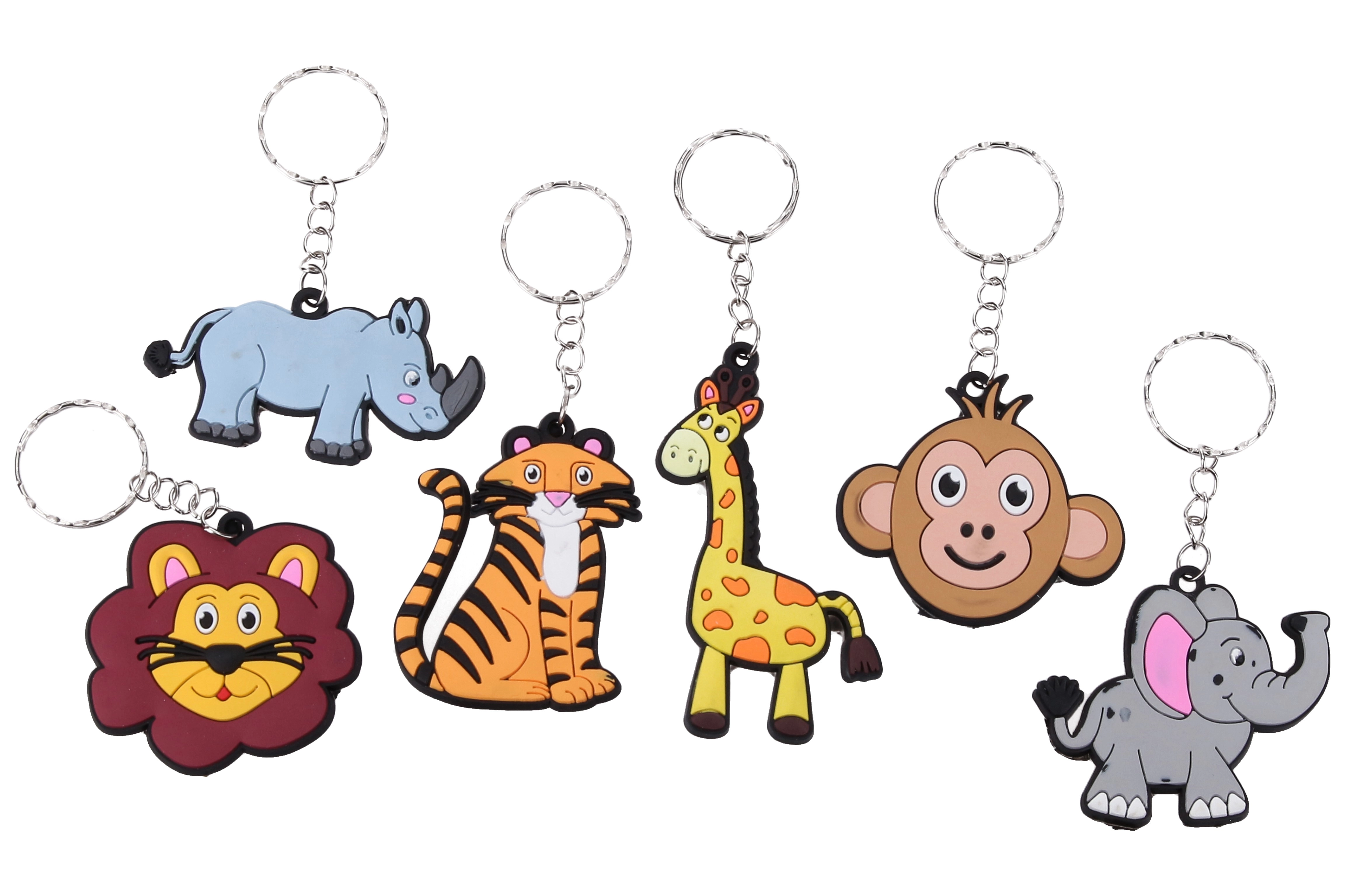 Prisrčen obesek za ključe z živalmi v praktičnem naboru motivov bo razveselil otroke in odrasle. Izberite med motivi tiger, opica, slon, lev, žirafa in nosorog. Odlično kot darilo, za ključe, nahrbtnik ali peresnico. Pakiranje vsebuje 12 kosov na kartonu.