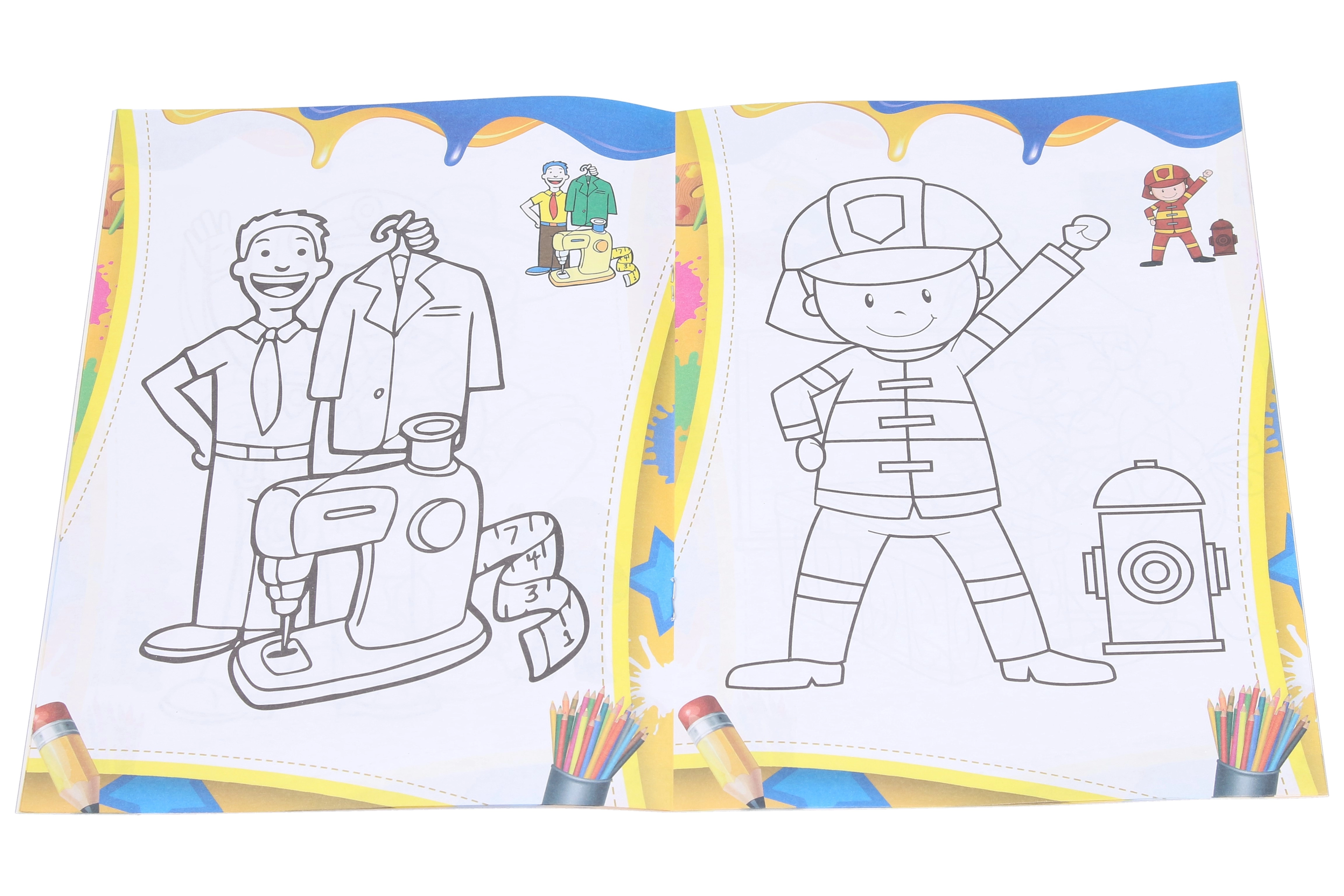 Odkrijte svet dela s temi pobarvankami na temo poklicev. Zvezek vsebuje 12 strani polnih ilustracij, ki bodo otroke zabavale ter podpirale njihovo ustvarjalnost, fino motoriko in spoznavanje različnih poklicev.