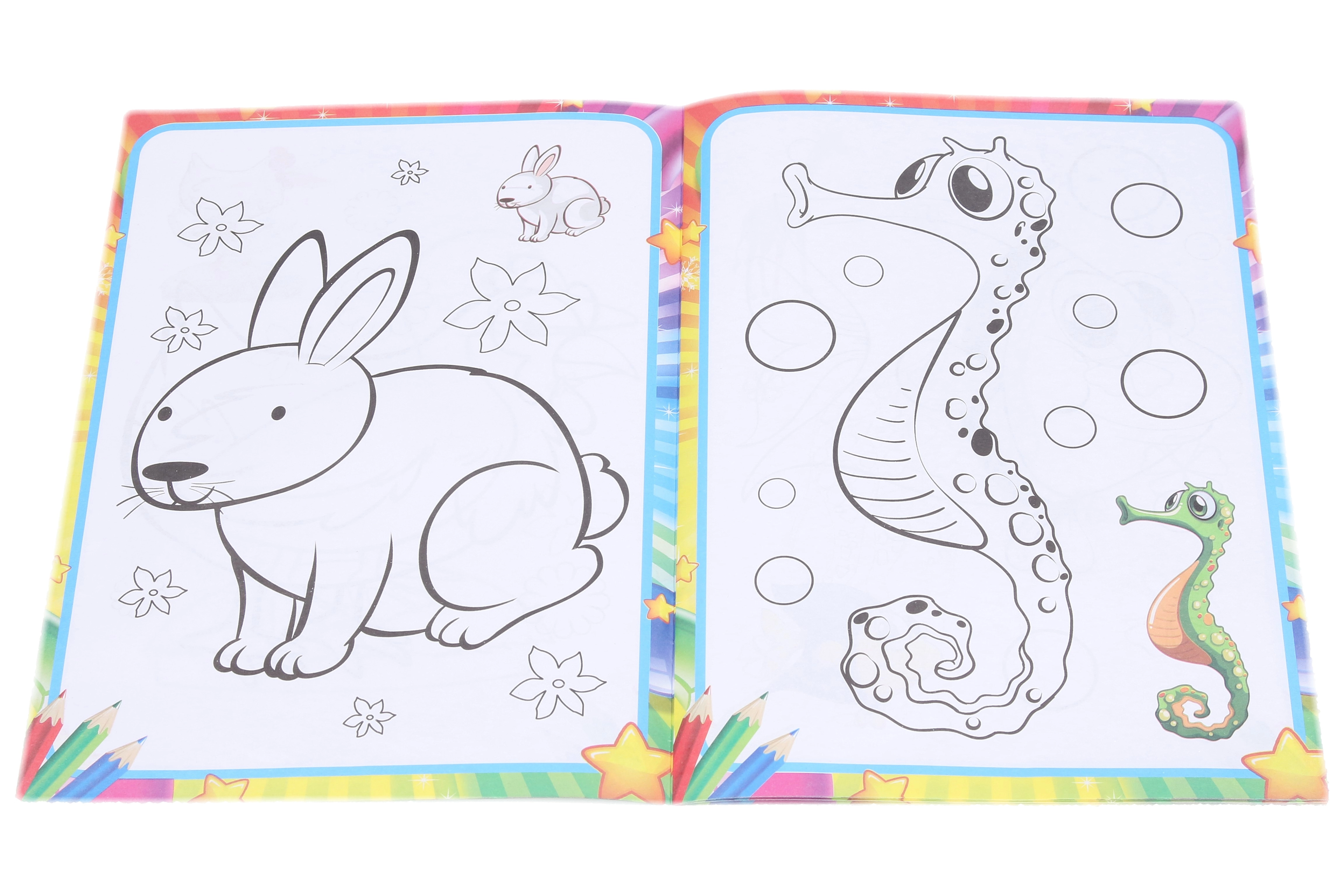 Odkrijte veselje do ustvarjanja s pobarvanko »Živali« na 24 straneh, ki razvija fino motoriko, kreativnost in domišljijo otrok. Idealno za domačo zabavo in na pot.