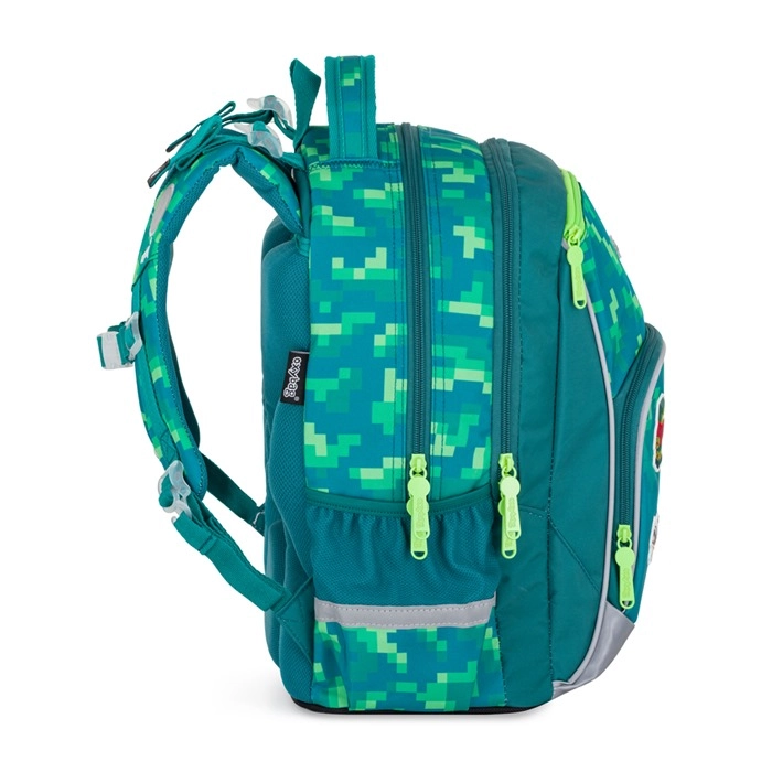 Šolski nahrbtnik Oxy Go Playworld v sodobnem piksel vzorcu je odlična izbira za mlajše šolarje od višine 125 cm. Ponuja dva glavna predelka za pregledno shranjevanje učbenikov in zvezkov, stranske žepe za steklenico in drobnarije ter številne manjše žepe za popolno organizacijo. Ergonomsko oblikovan hrbtni del z oblazinjenjem in nastavljivimi naramnicami zagotavlja udobje skozi ves šolski dan.