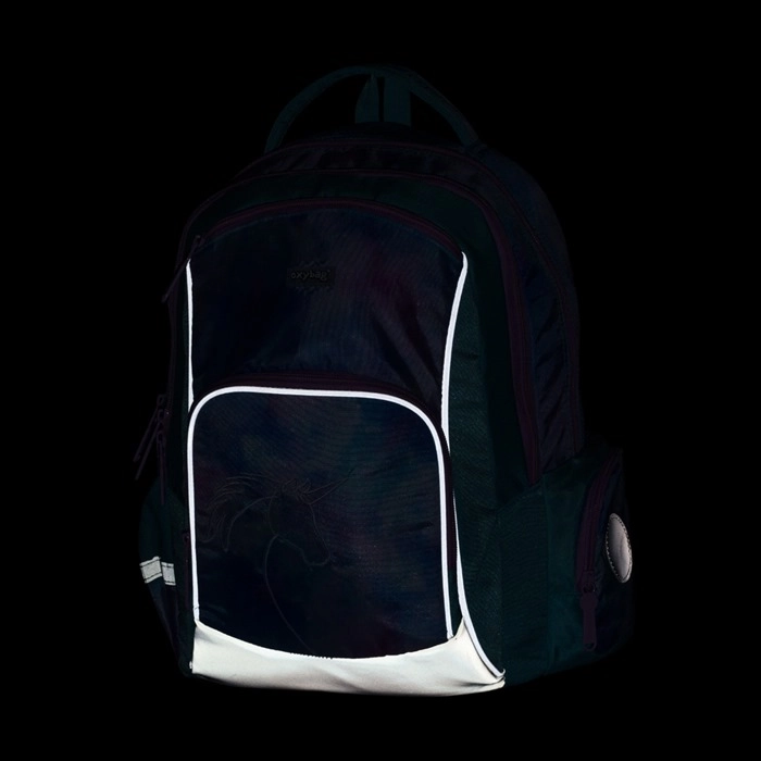 Oxy Go Unicorn je lahek in hkrati prostoren šolski nahrbtnik, idealen za prvi triletnik (1.–3. razred) in višino otroka od 125 cm. Zahvaljujoč ergonomskemu hrbtnemu panelu in oblazinjenim ramenskim naramnicam nudi največje udobje tudi pri polni obremenitvi. Pastelni “unicorn” dizajn z galaktičnim vzorcem nahrbtniku daje izviren videz, ki ga bodo otroci vzljubili.