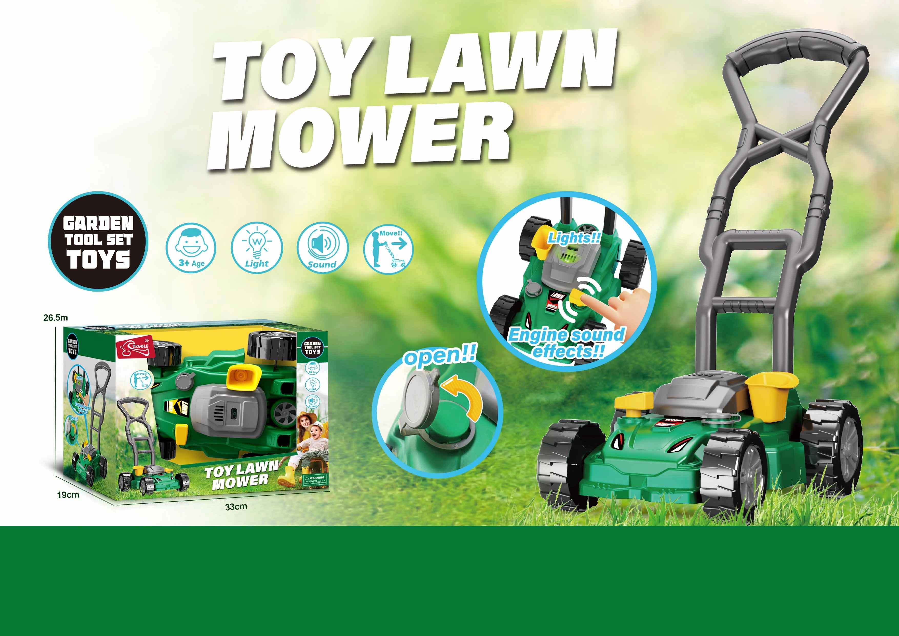 Ta otroška kosilnica je idealna za male pomočnike, ki želijo posnemati odrasle pri delu na vrtu. Zahvaljujoč svetlobnim in zvočnim učinkom deluje igra bolj resnično, otroci pa bodo uživali v obilici zabave v gibanju.