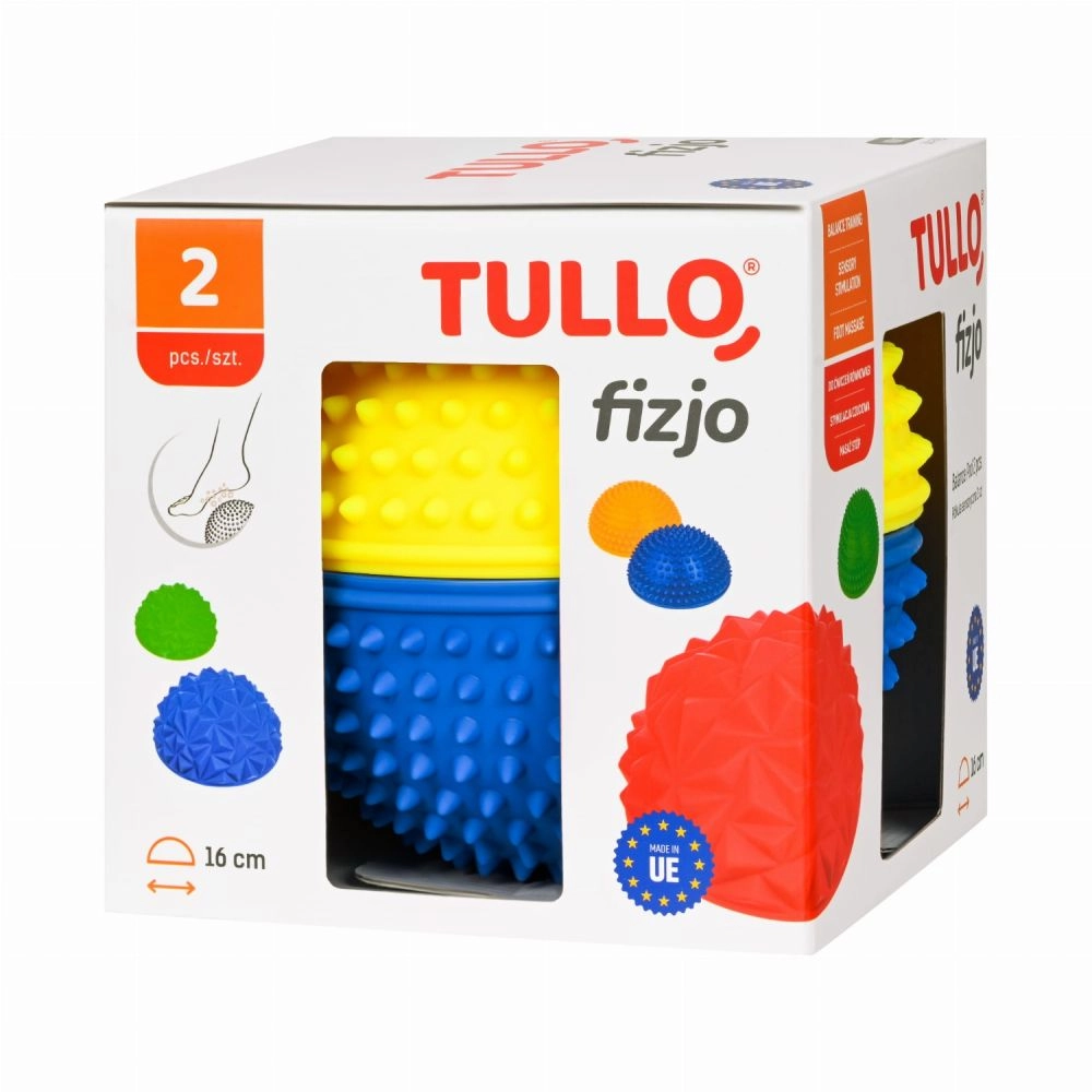 Odkrijte univerzalne pripomočke za vadbo ravnotežja in motorike – komplet dveh senzoričnih polkrogel v rumeno‑modri barvi s premerom 16 cm. Zahvaljujoč protizdrsni teksturi z masažnimi izboklinami izboljšujejo stabilnost, koordinacijo in propriocepcijo, hkrati prijetno masirajo stopala ter podpirajo rehabilitacijo in aktivno igro otrok.