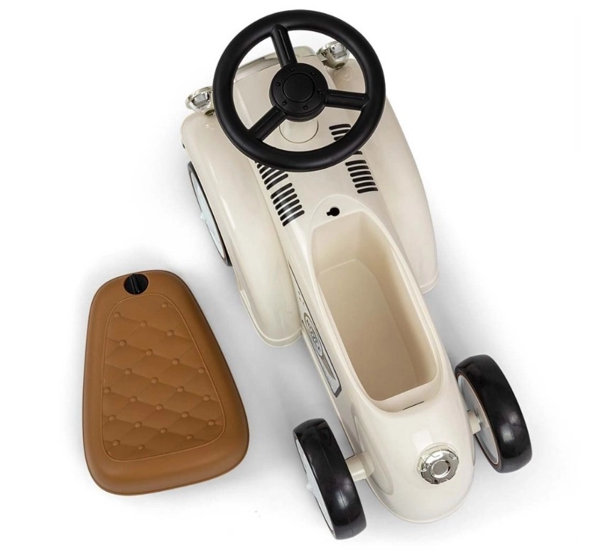 Praktičen odpirajoč se shranjevalni predal pod sedežem sprejme drobnarije ali najljubše igrače. Mehke pnevmatike EVA so tihe, ne opraskajo tal in dobro blažijo neravnine. Lahka plastična konstrukcija olajša prenašanje ter hkrati zagotavlja varno in udobno vožnjo za vašega malčka.