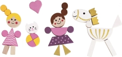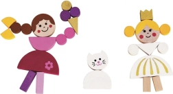 Barvni leseni deli z magnetom se zlahka zložijo v like, živalice in gradove. Otroci si ustvarijo lastne pravljice in prizore povsem po svoji domišljiji.