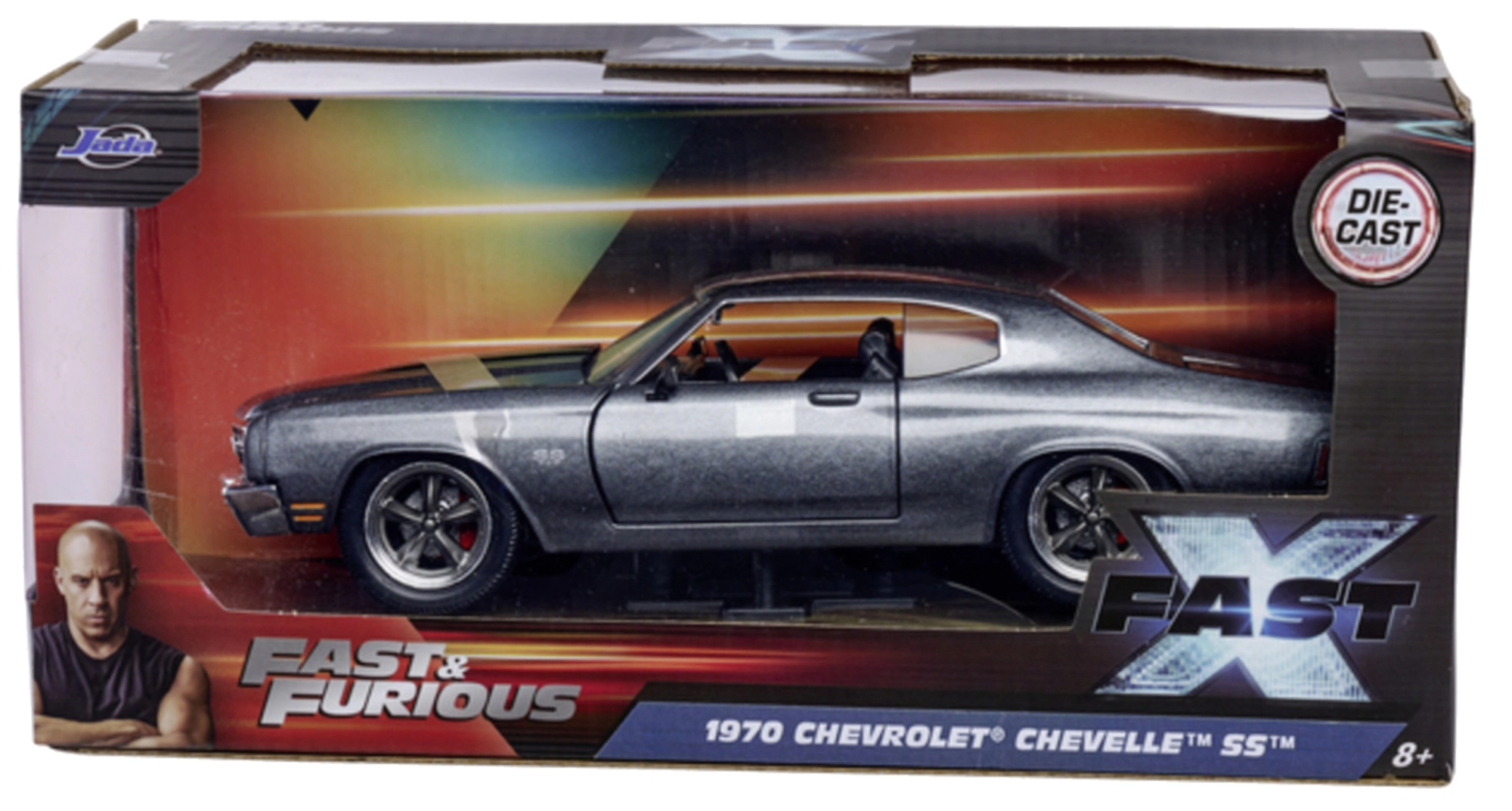 Podrobno izdelan zbirateljski model znamke Jada Toys, navdihnjen s sago FAST & FURIOUS. Ponaša se s kovinsko karoserijo, odpirajočimi se vrati in prtljažnikom ter zvestimi proporci kultnega vozila 1970 Chevrolet Chevelle SS v dolžini 19 cm – idealno za ljubitelje filmov in kot stilska dekoracija.