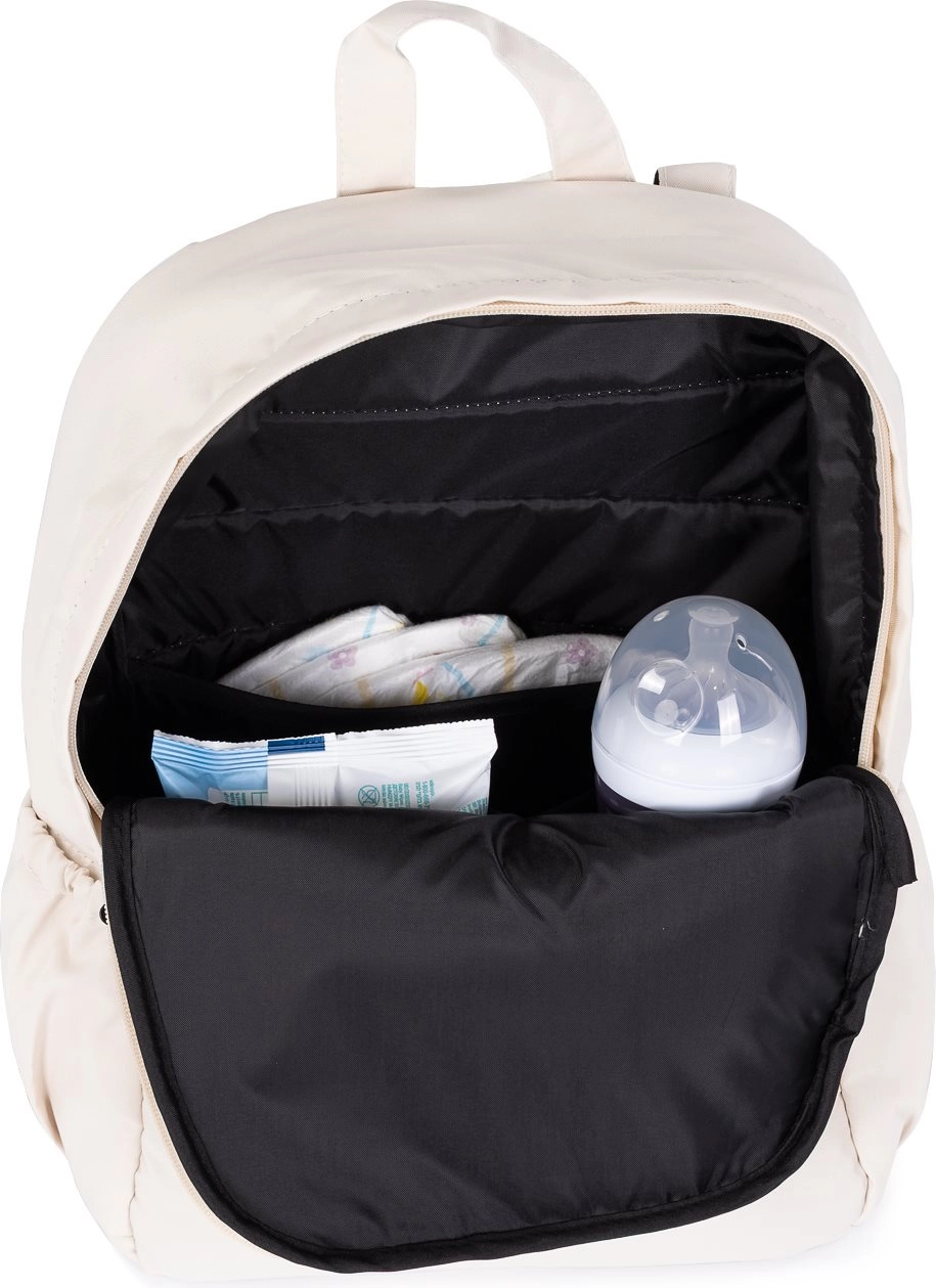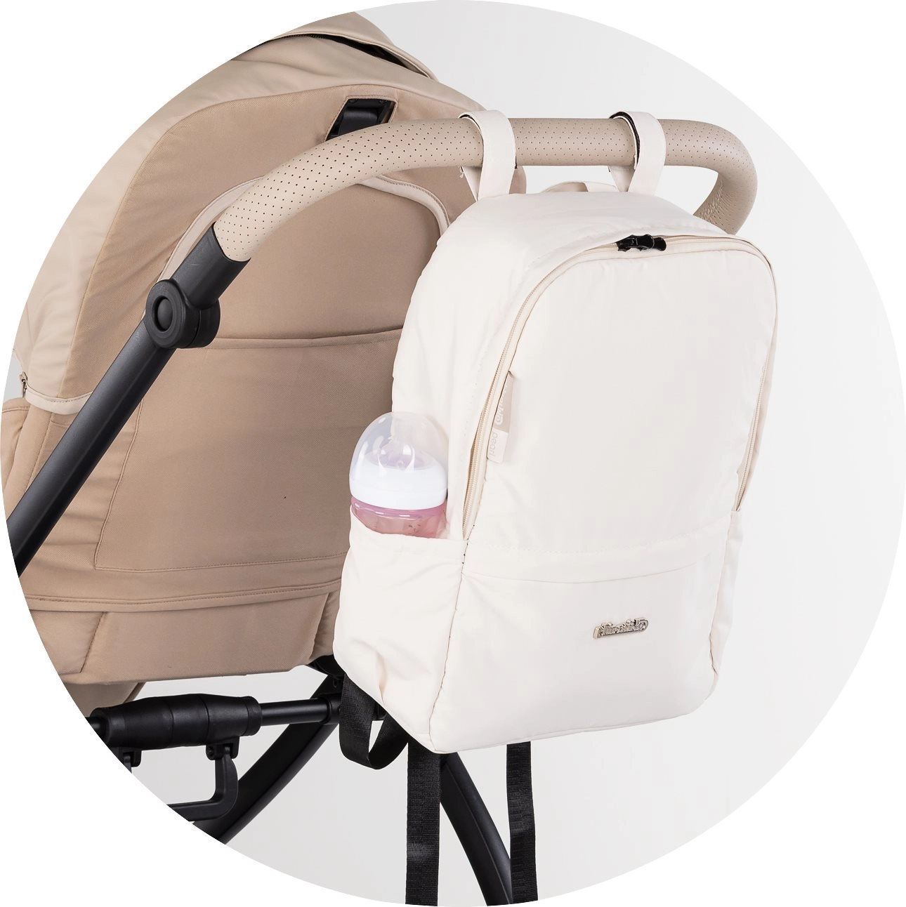Previjalni nahrbtnik CHIPOLINO Latte je pametna rešitev za starše, ki želijo imeti vse pri roki in hkrati proste roke. Zaradi velike prostornine vanj spravite plenice, robčke, stekleničke, rezervna oblačila in igrače. Sprednji žep za hiter dostop in premišljena notranja razporeditev skrbita za popoln red.
