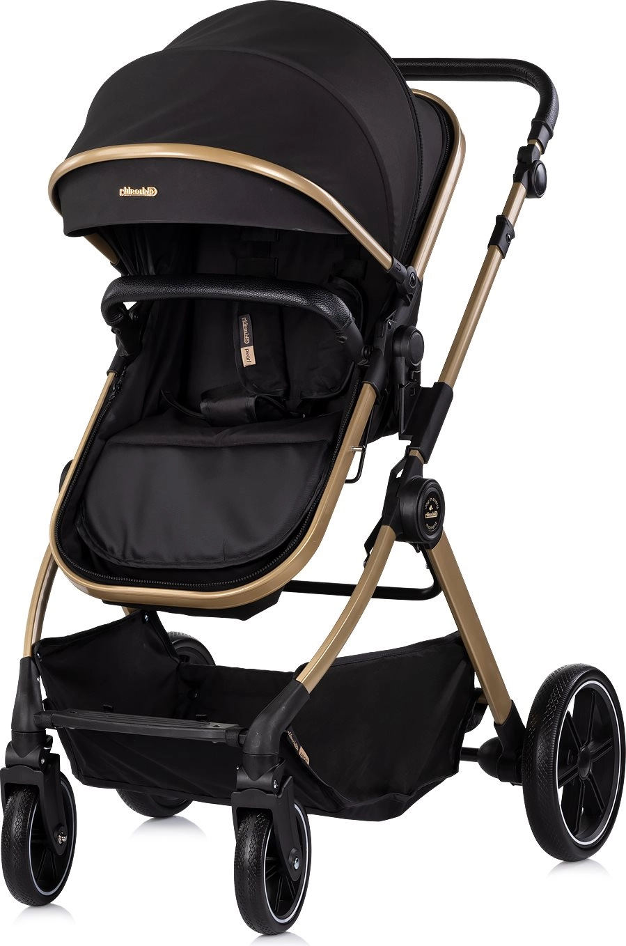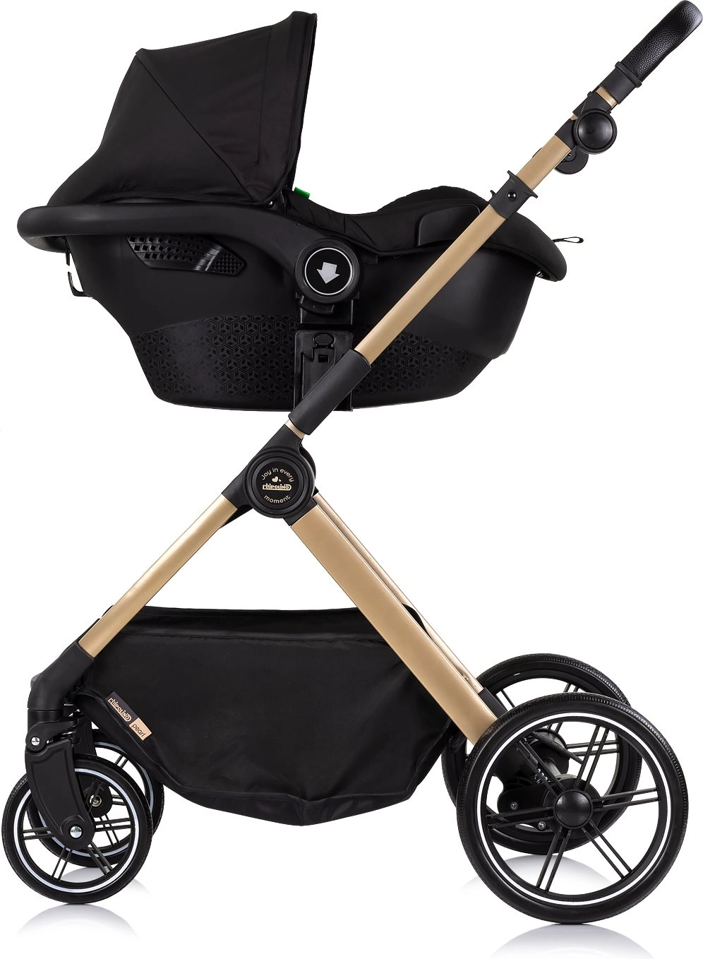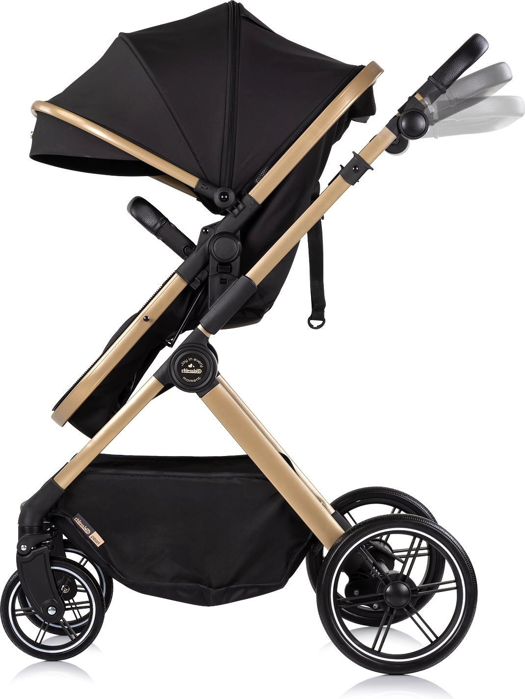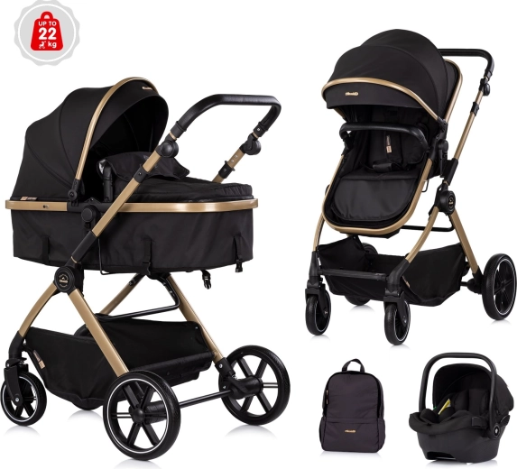 Voziček Chipolino Pearl 2v1 raste z vašim otrokom – z enim gibom ga spremenite v udobno globoko košaro za novorojenčka, kasneje pa v prostoren športni sedež s 5-točkovnimi pasovi. Velika razširljiva strešica z okencem nudi senco in zasebnost, detajli iz PU usnja pa dodajo prestižen videz in enostavno vzdrževanje.
