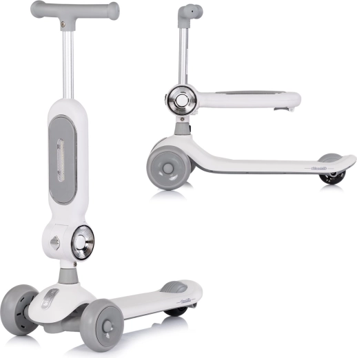 CHIPOLINO Bloomi 2v1 raste z otrokom – začnite kot udoben poganjalec s sedežem in preidite na skiro, ko mali voznik pridobi samozavest. Zaradi triciklične zasnove je vožnja stabilna in intuitivna, široka deska z nedrsečo površino pa povečuje varnost in udobje.