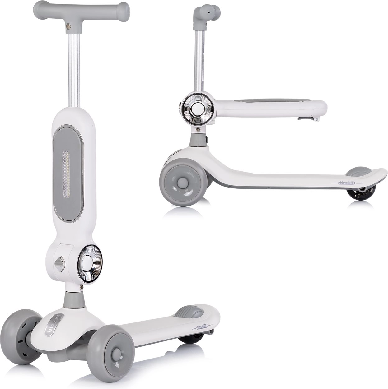 Multifunkcionalni otroški skiro CHIPOLINO Bloomi 2v1 združuje skiro in poganjalec v enem. Ponuja stabilno triciklično zasnovo, nastavljivo krmilo, široko nedrsečo desko in svetleča PU kolesa, ki se aktivirajo z gibanjem. Sedež daje manjšim otrokom dodatno oporo, zadnja nožna zavora pa poskrbi za varno ustavljanje. Idealno za vadbo ravnotežja in koordinacije.