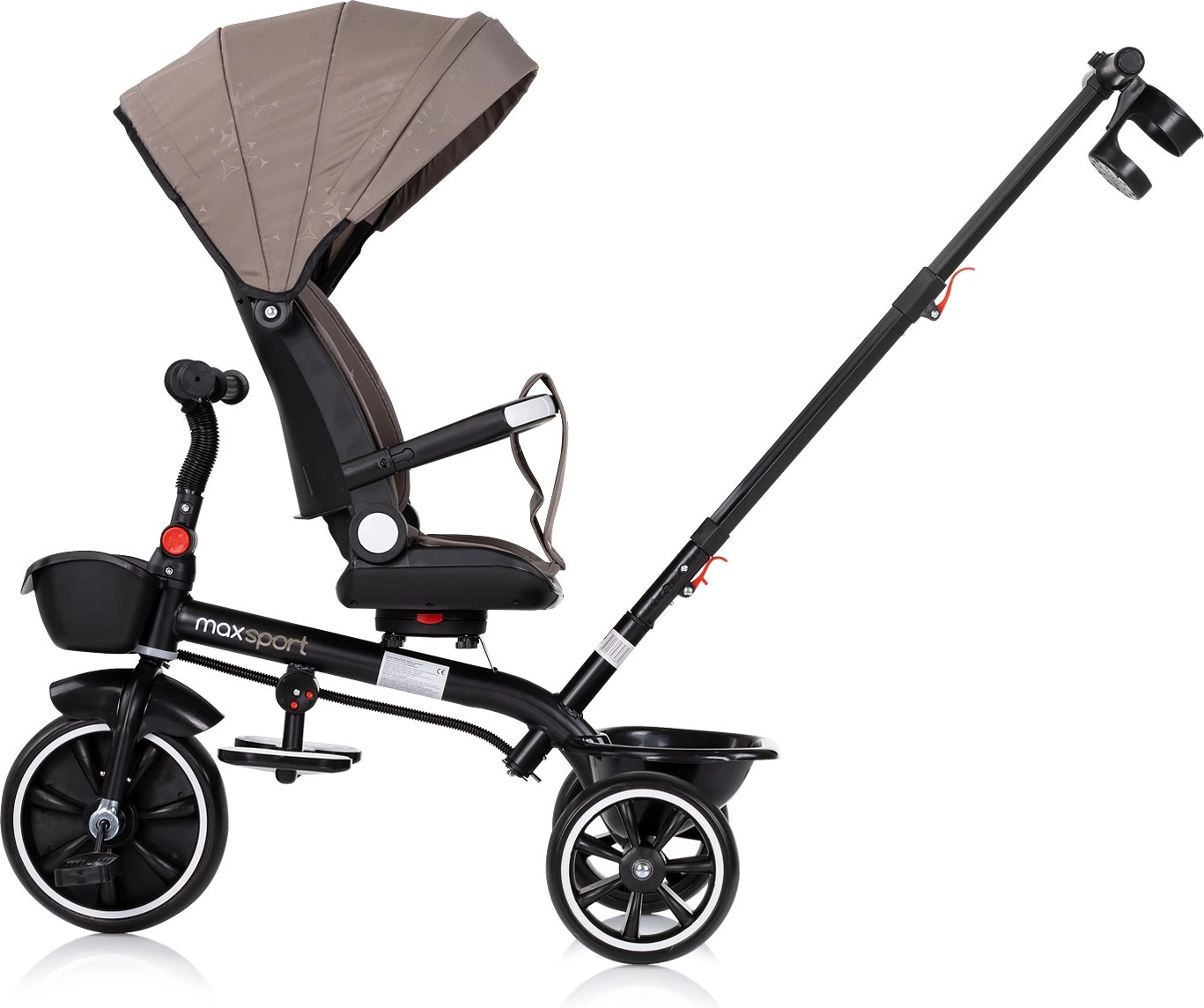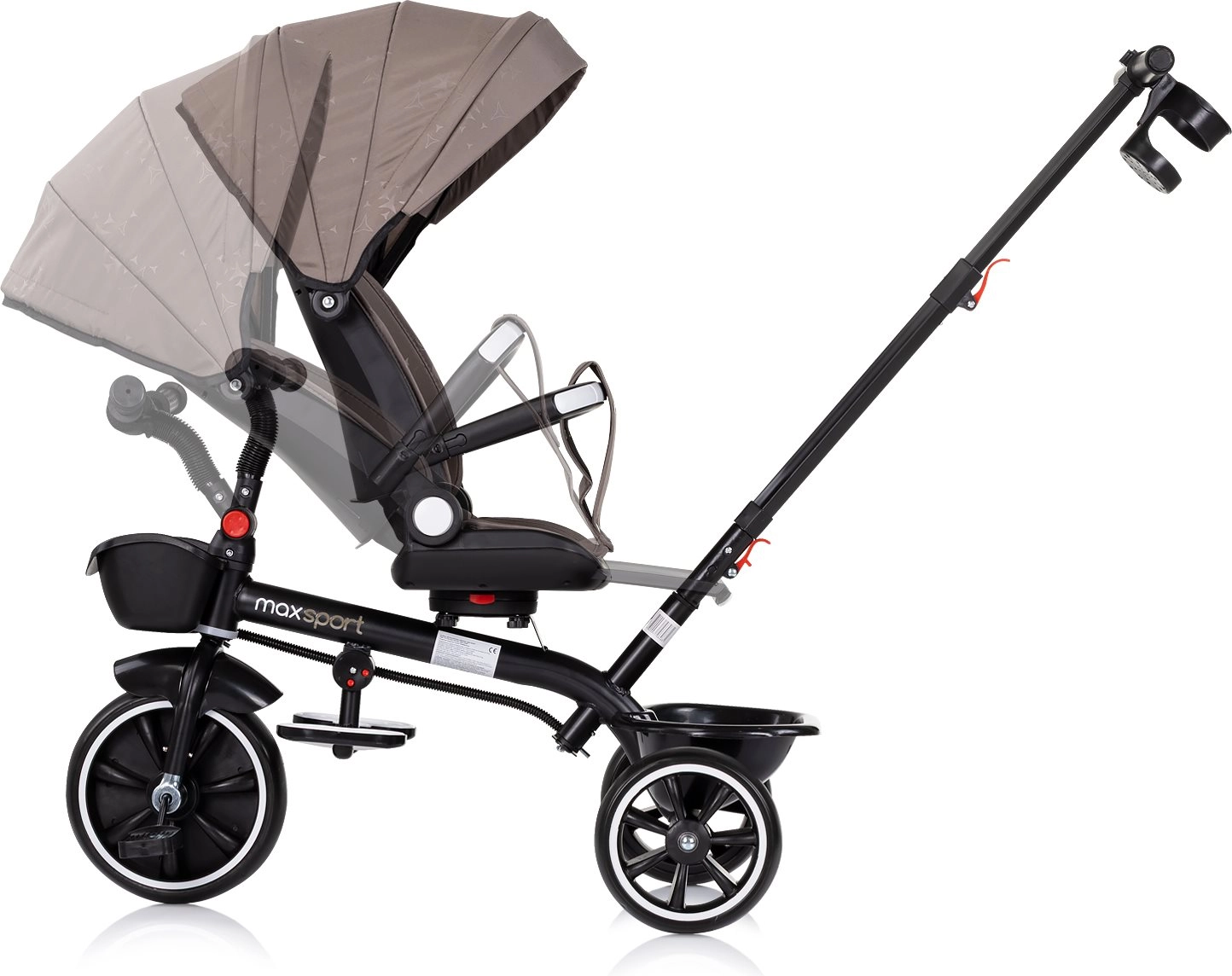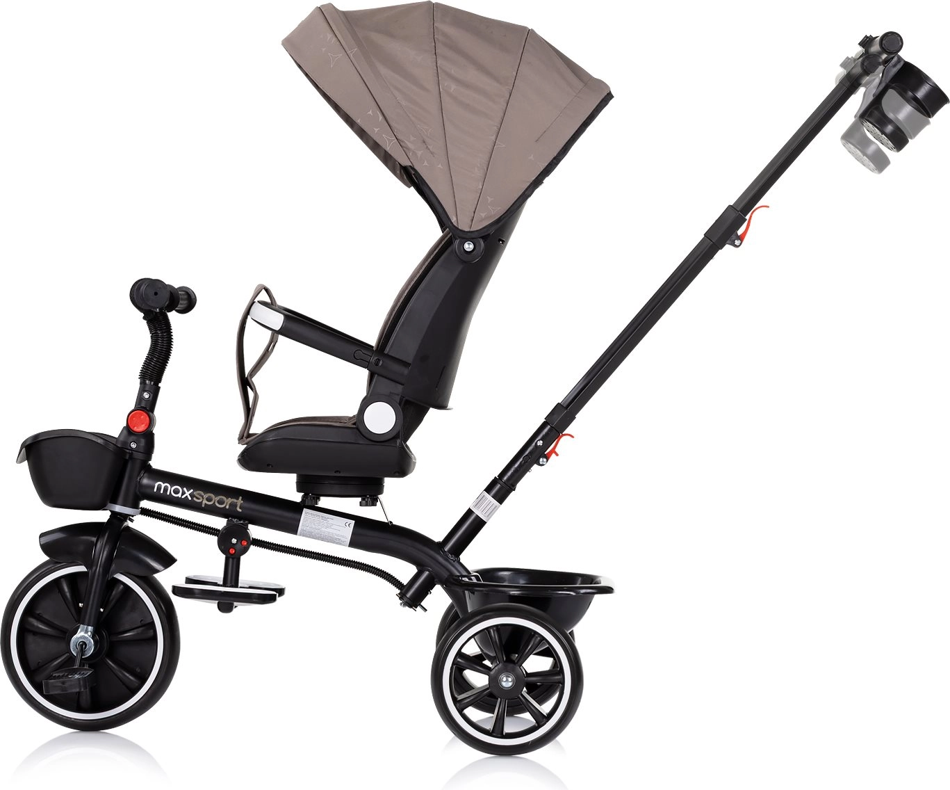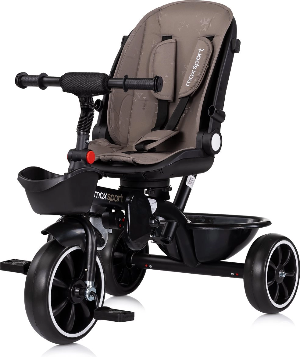 Ta pametni tricikel združuje udobje vozička z veseljem prve vožnje. Mlajši otroci se lahko vozijo s pomočjo staršev zaradi dolge ročice in varnostne opreme, starejši pa poganjajo samostojno. Odstranljiva strešica, starševska ročica in varnostni lok omogočajo hitro preureditev iz načina za malčke v tricikel za predšolske otroke.