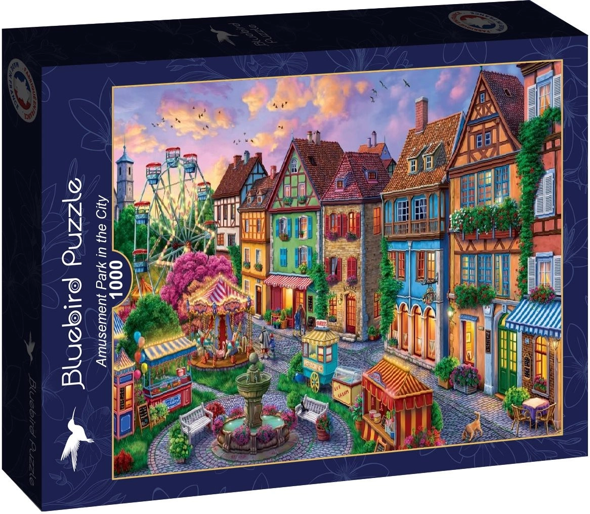 Odkrijte barvito vzdušje mestnega lunaparka in sestavite impresivno podobo velikosti približno 69 × 47,8 cm. Sestavljanka s 1000 koščki znamke BLUEBIRD ponuja uravnoteženo zahtevnost, odlično kakovost tiska in natančno oblikovane koščke za tekoče sestavljanje.