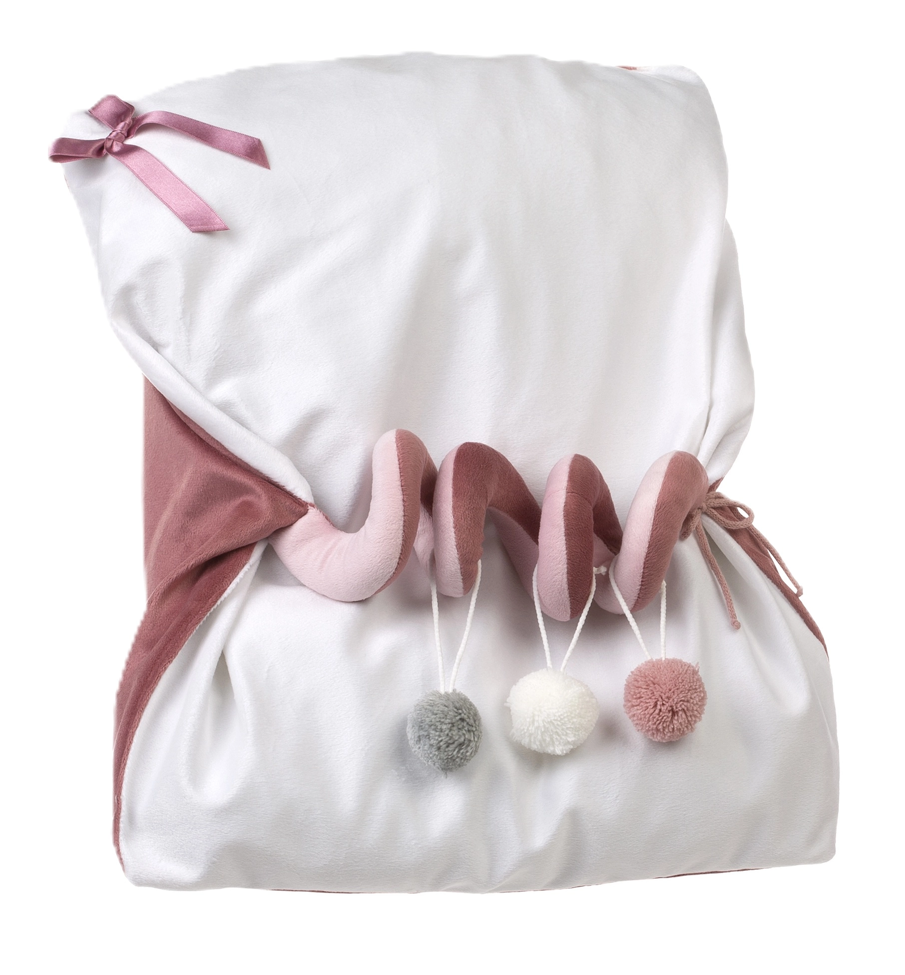 - 2 kosa oblačil, žametni slinček, podloga s spiralno igračo