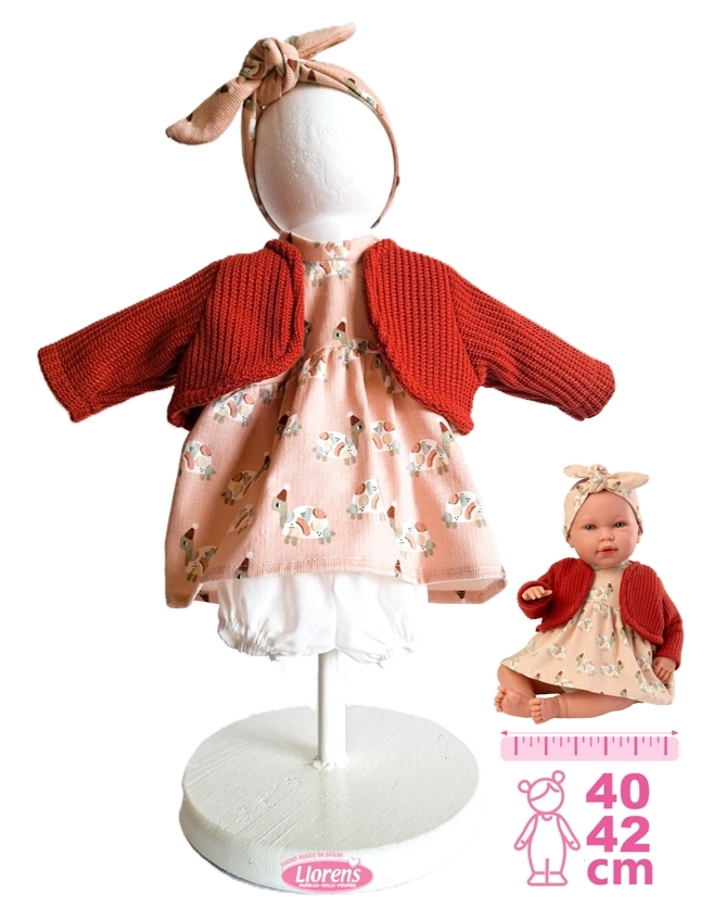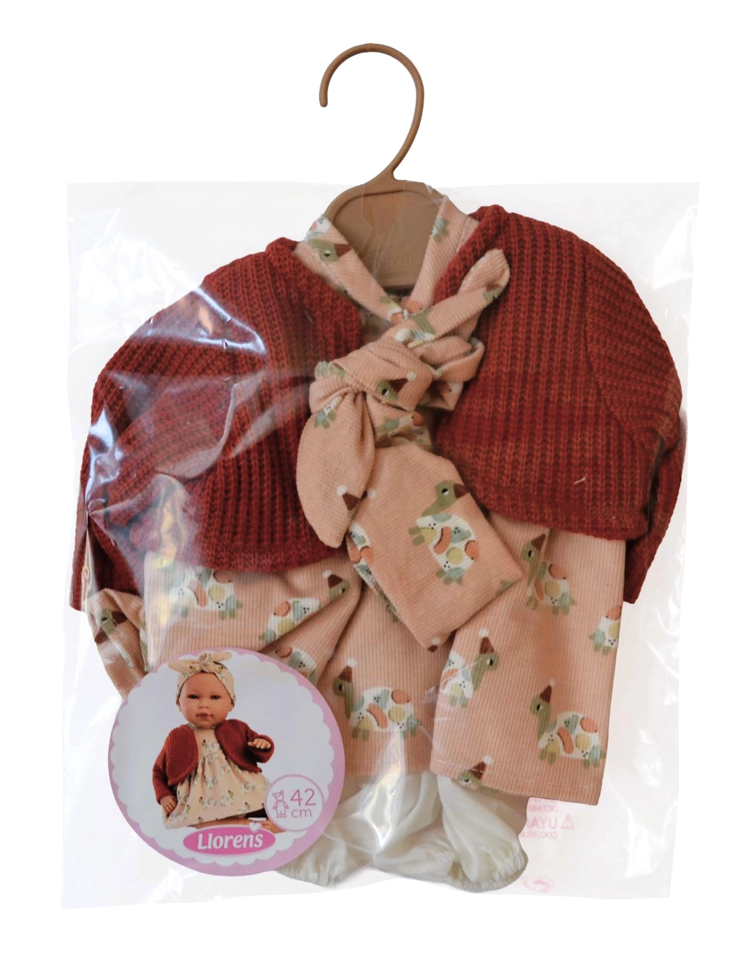 Privoščite svoji punčki novo opravo s 4-delnim kompletom Llorens, zasnovanim posebej za punčke New Born velikosti 40–42 cm. Vsak kos je skrbno in ročno izdelan v Španiji, kar zagotavlja natančno izdelavo, udobno oblačenje in dolgo življenjsko dobo.