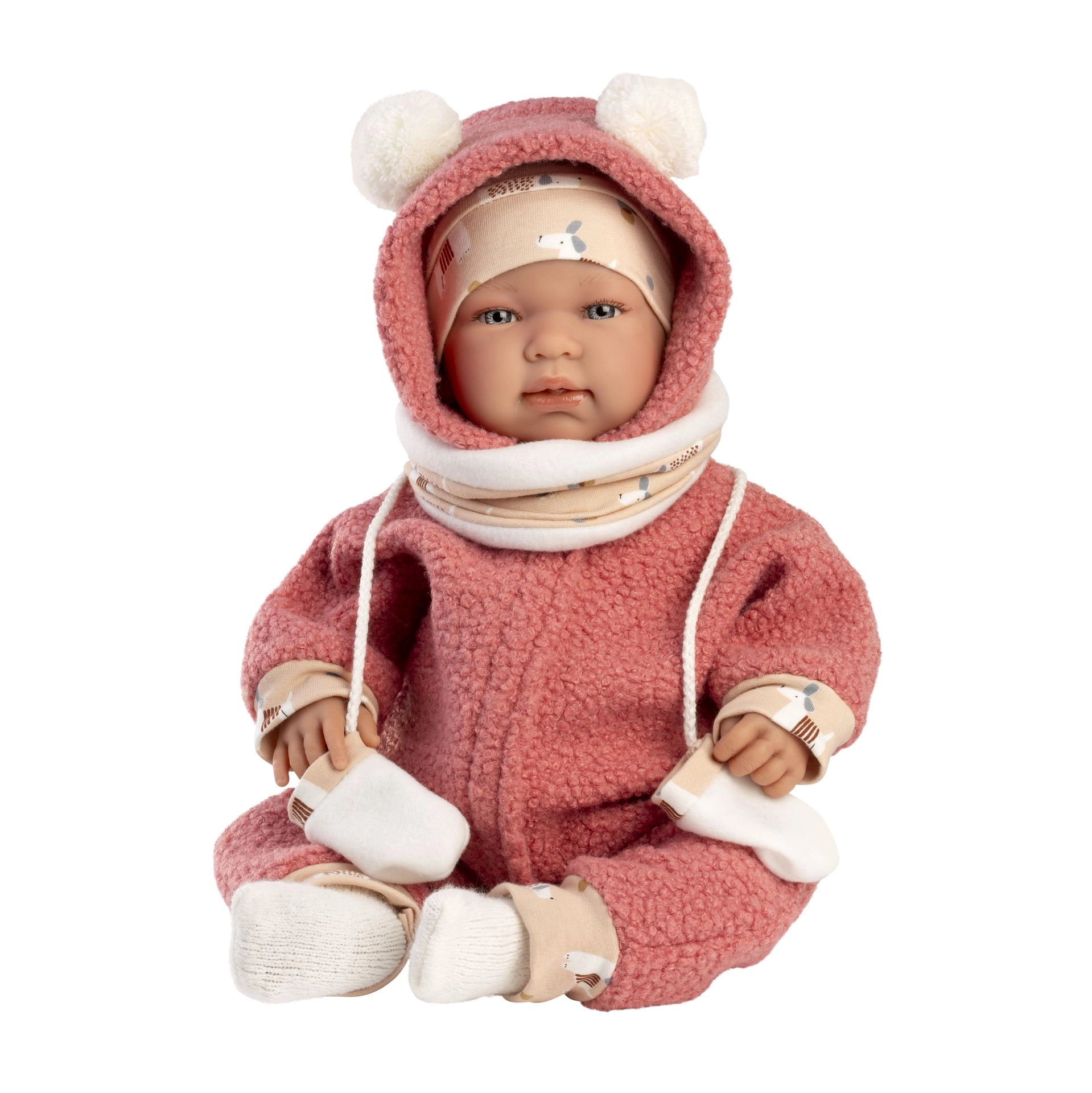 Privoščite svoji punčki popoln videz s tem 5-delnim kompletom oblačil Llorens za punčke New Born. Skrbna izdelava in prijetni materiali dodajo igri realističnost in udobje. Zahvaljujoč univerzalni velikosti 43–45 cm je oblačilo primerno za večino dojenčkastih punčk v tej kategoriji.