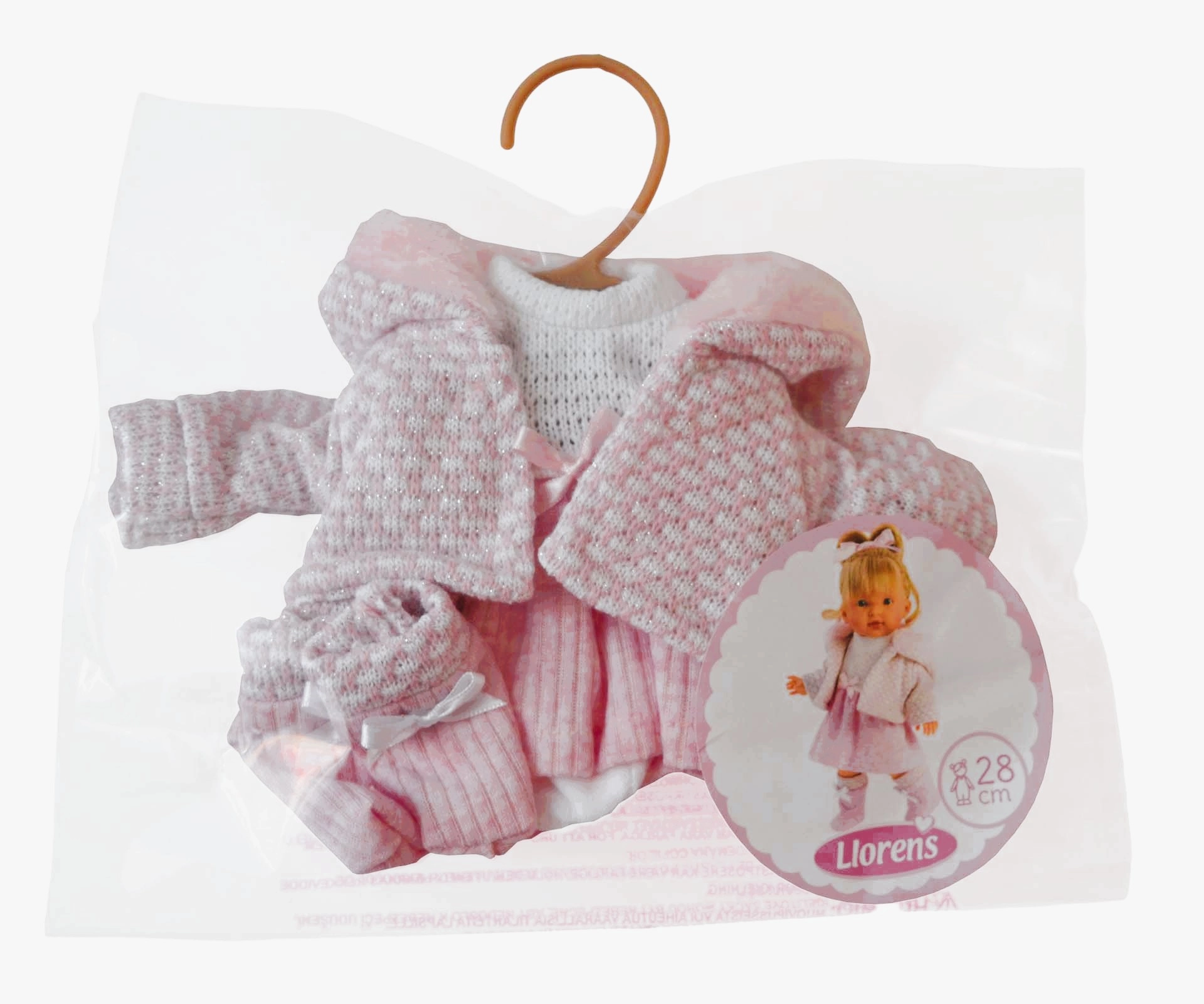 Razširite garderobo svoje punčke s kakovostnim 4-delnim kompletom znamke Llorens, namenjenim punčkam velikosti 28 cm. Ročna izdelava iz Španije zagotavlja skrbno dodelavo, prijetne materiale in dolgo življenjsko dobo – idealno za vsakodnevno igro.