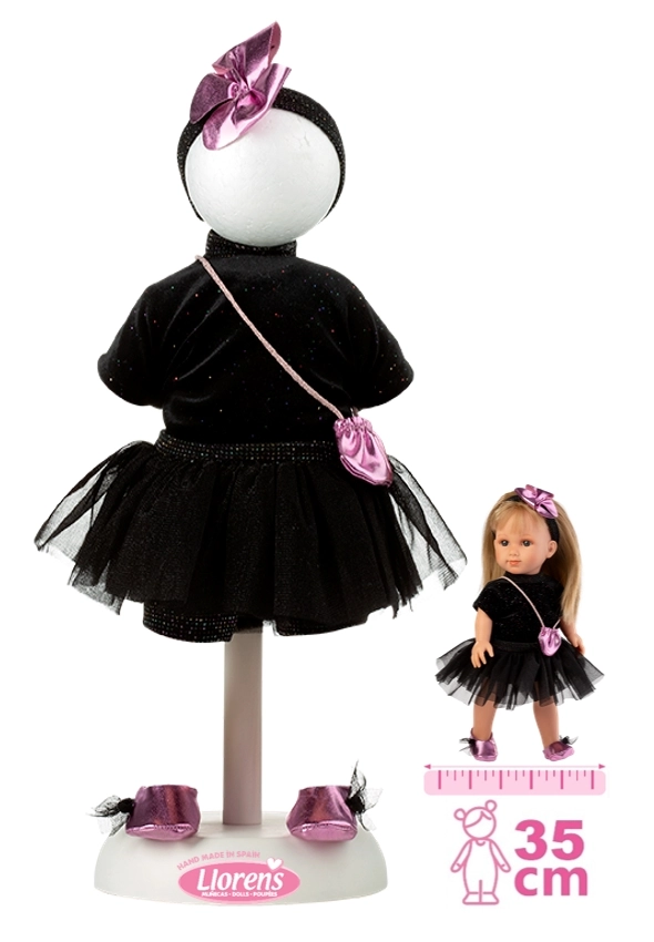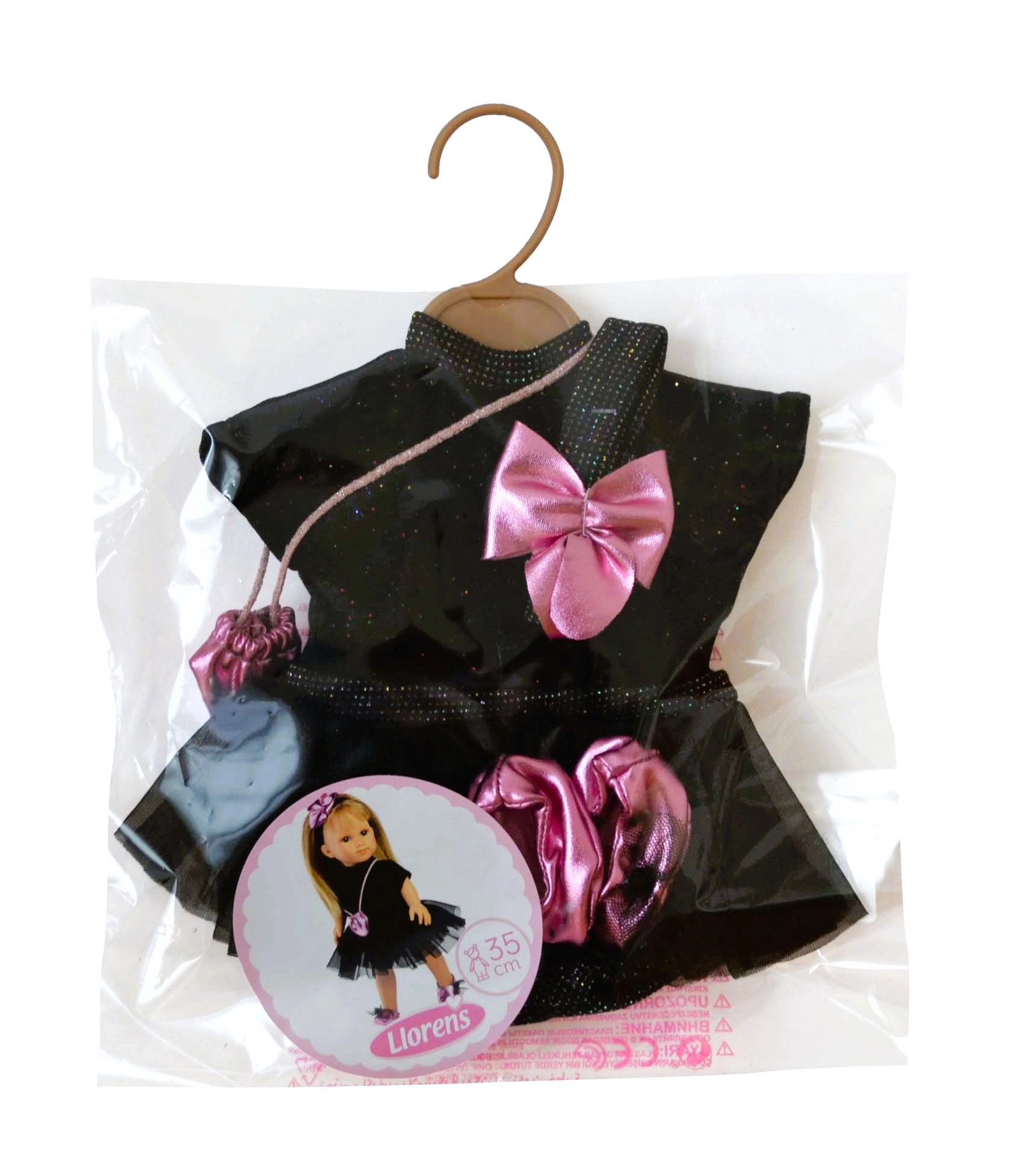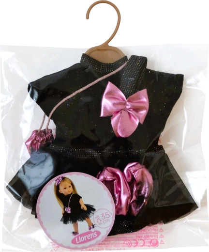 Privoščite svoji punčki stajliš videz s tem 5-delnim kompletom za punčke Llorens 35 cm. Ročno izdelano v Španiji, vključuje 3 kose oblačil, okrasno elastiko z mašno za lase in torbico. Kakovostna izdelava, enostavno oblačenje in idealno za kreativno igro otrok od 3 let dalje.