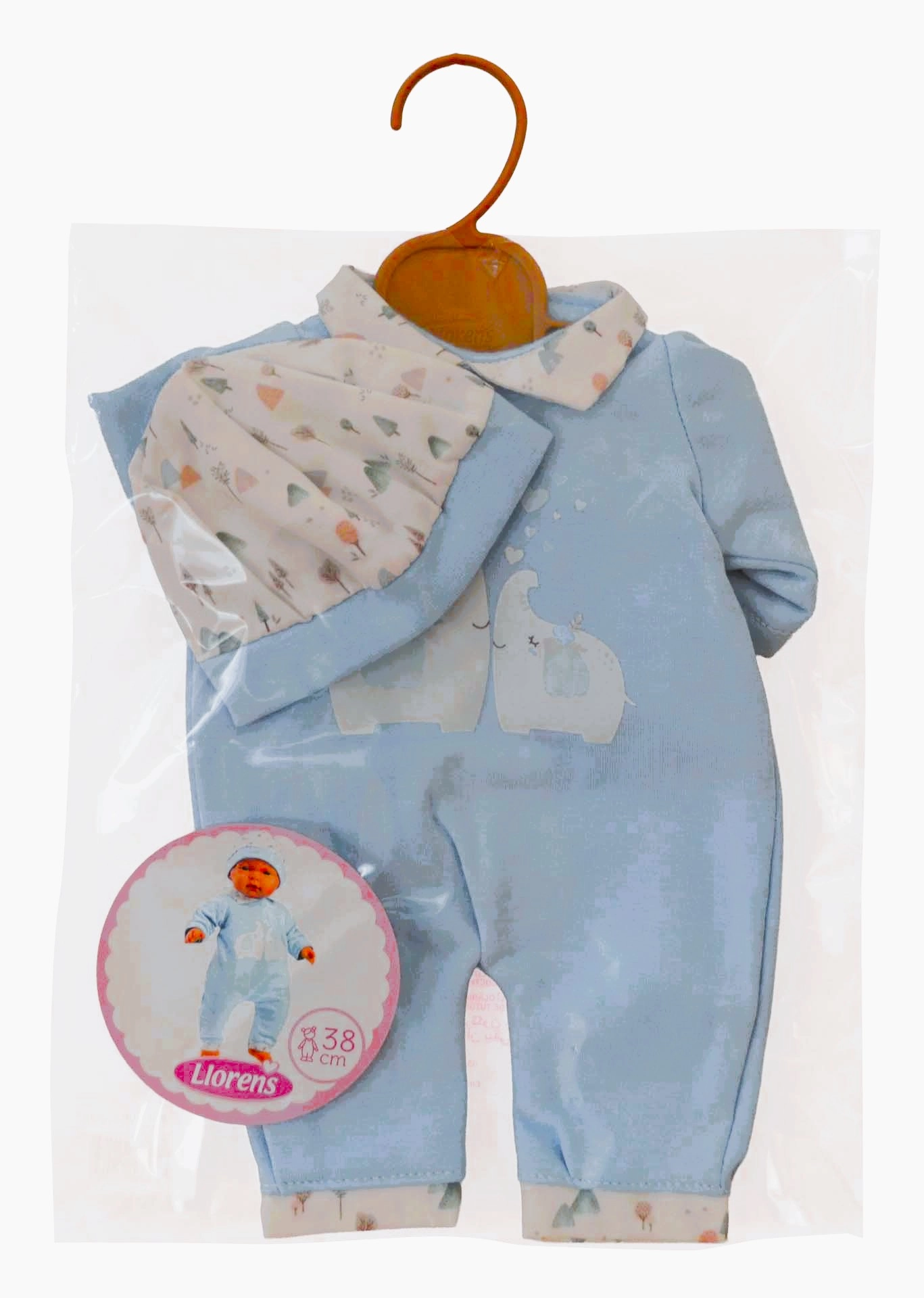 Dopolnite garderobo svoje punčke z elegantnim in udobnim kompletom, ki je skrbno sešit tako, da se popolno prilega punčkam velikosti 38 cm. Španska znamka LLorens je znana po kakovosti in poudarku na detajlih, zato je oblačilo trpežno in prijetno na dotik.