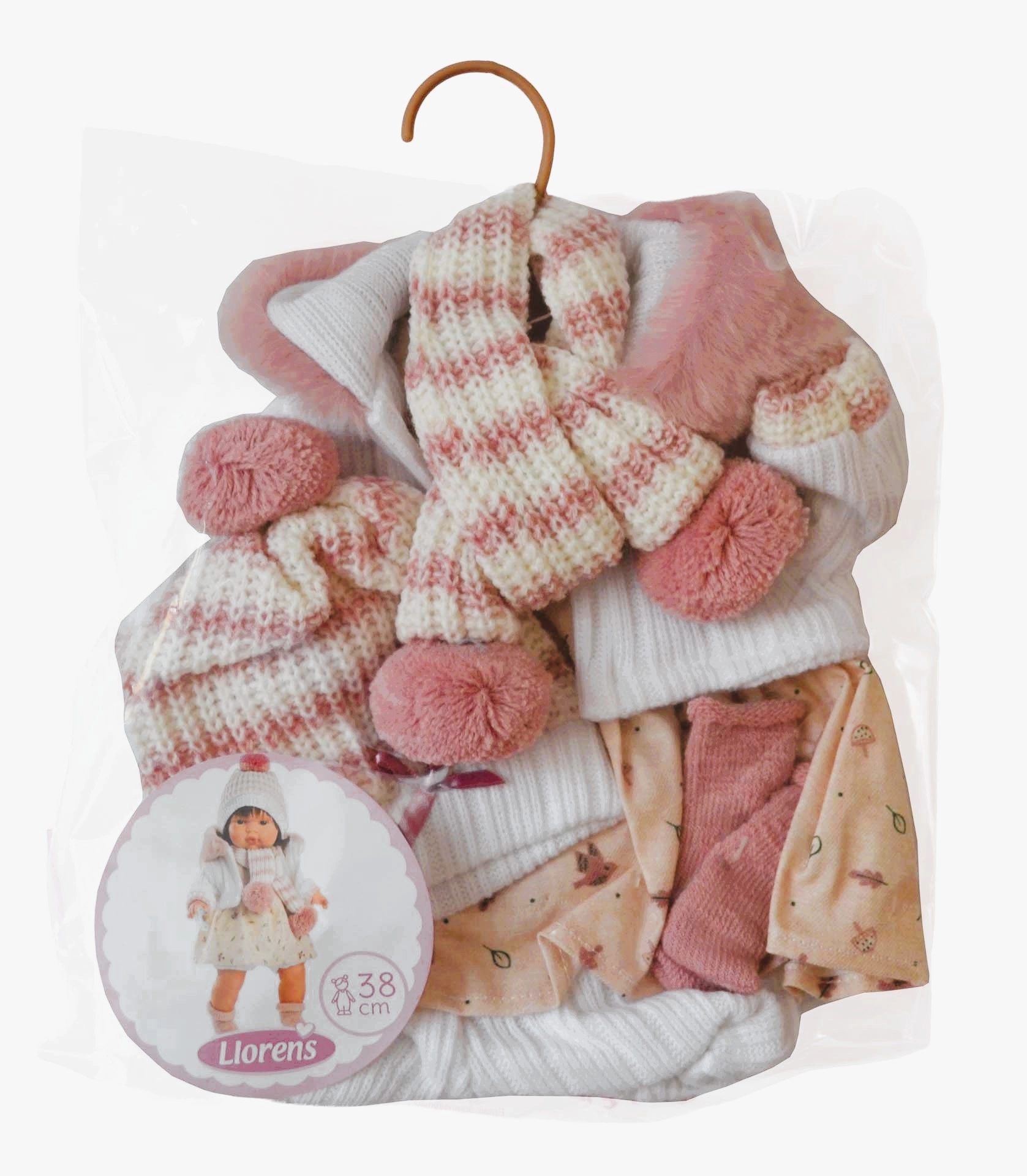 Komplet je zasnovan za punčke velikosti 38 cm in je združljiv z večino punčk te velikosti. Praktično pakiranje z obešalnikom omogoča enostavno shranjevanje in ohranjanje reda v otroški sobi. Odlična izbira za razvoj domišljije, fine motorike in vsakodnevnih igralnih scenarijev.