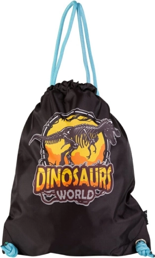 Praktična šolska vrečka z motivom dinozavrov je idealna za športno opremo in copate. Izdelana iz trpežnega, pralnega materiala ter s zatezanjem z vrvicami, ki hkrati omogočajo udobno nošenje na hrbtu.