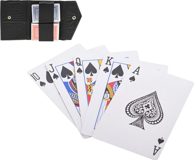 Univerzalni komplet 108 igralnih kart v praktičnem etuiju in trpežni škatlici za enostavno prenašanje. Odlično za družine in prijatelje, karte spodbujajo koncentracijo, fino motoriko in so idealen družabni ledolomilec. Primerno za otroke od 3 let.