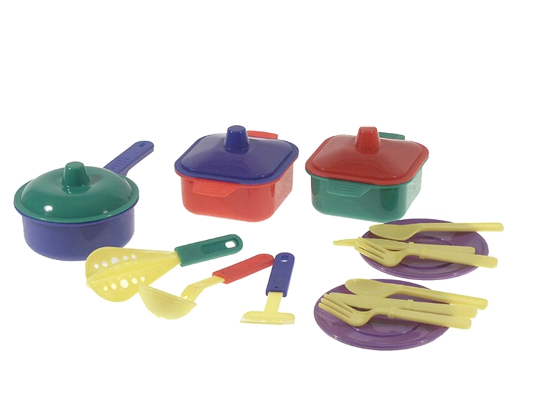 V kompletu najdete vse potrebno za malo kuhinjo: ponve, lonec, krožnike in pribor. Komplet je primeren za otroške kuhinje, igro kuhanja in skupne igre s sorojenci ter prijatelji.