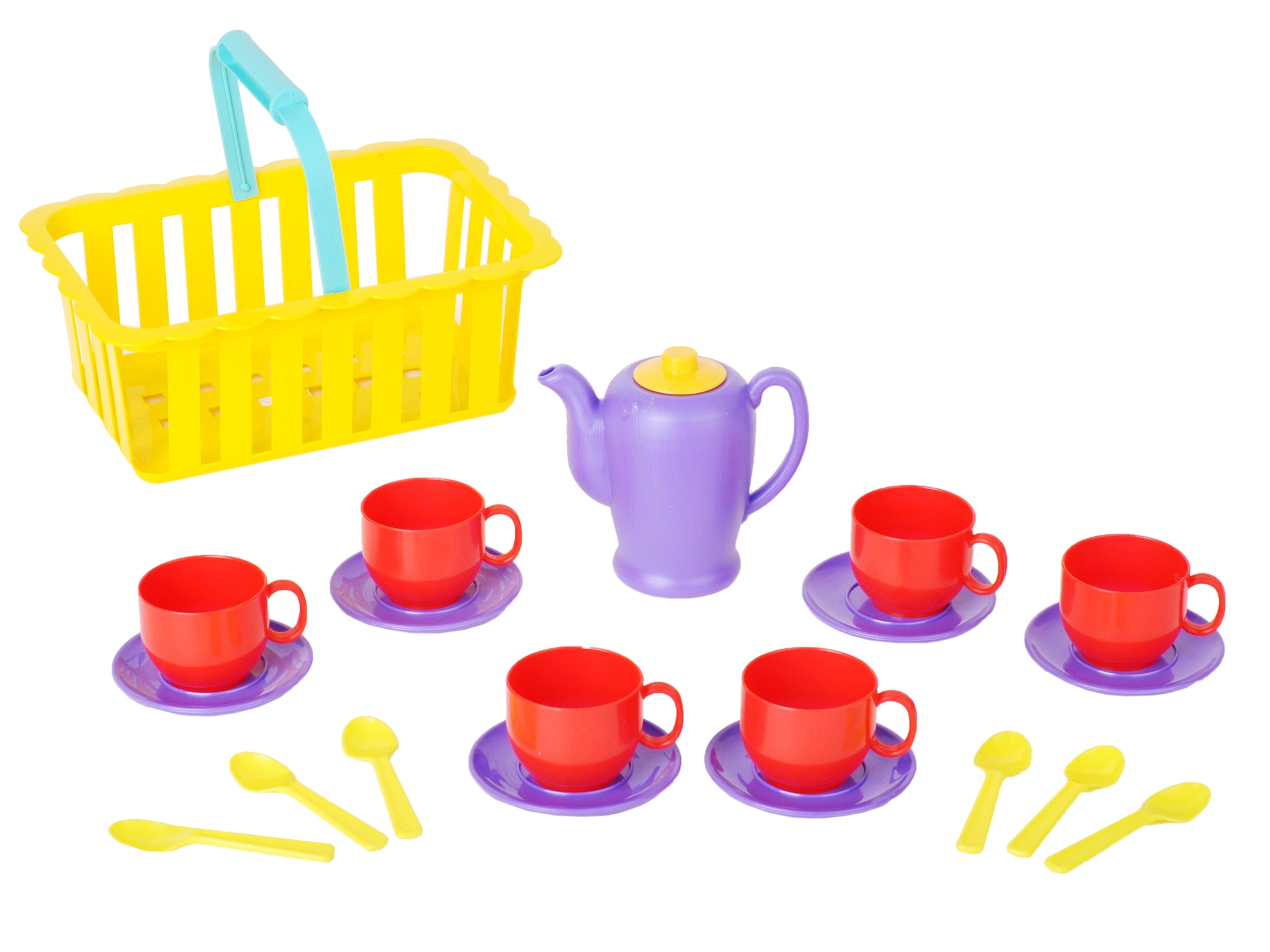 Ta barvit otroški čajni set v košarici je odlična izbira za igro gospodinjstva in prve družabne čajanke. Lahek in trpežen plastičen material je primeren za vsakodnevno igro in enostavno vzdrževanje. Zahvaljujoč priročni košarici imate vse dele vedno skupaj in pripravljene za na pot ali obiske.