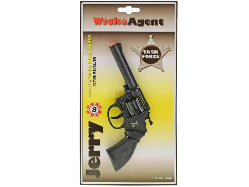 Kapsulna pištola Jerry je odlična izbira za otroške igre policistov in vestern junakov. Zahvaljujoč lahki plastični konstrukciji se udobno drži in preprosto upravlja, medtem ko kapsule za 8 strelov poskrbijo za realističen pok in napeto vzdušje vsake igre.