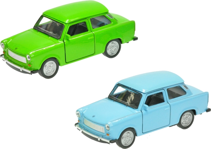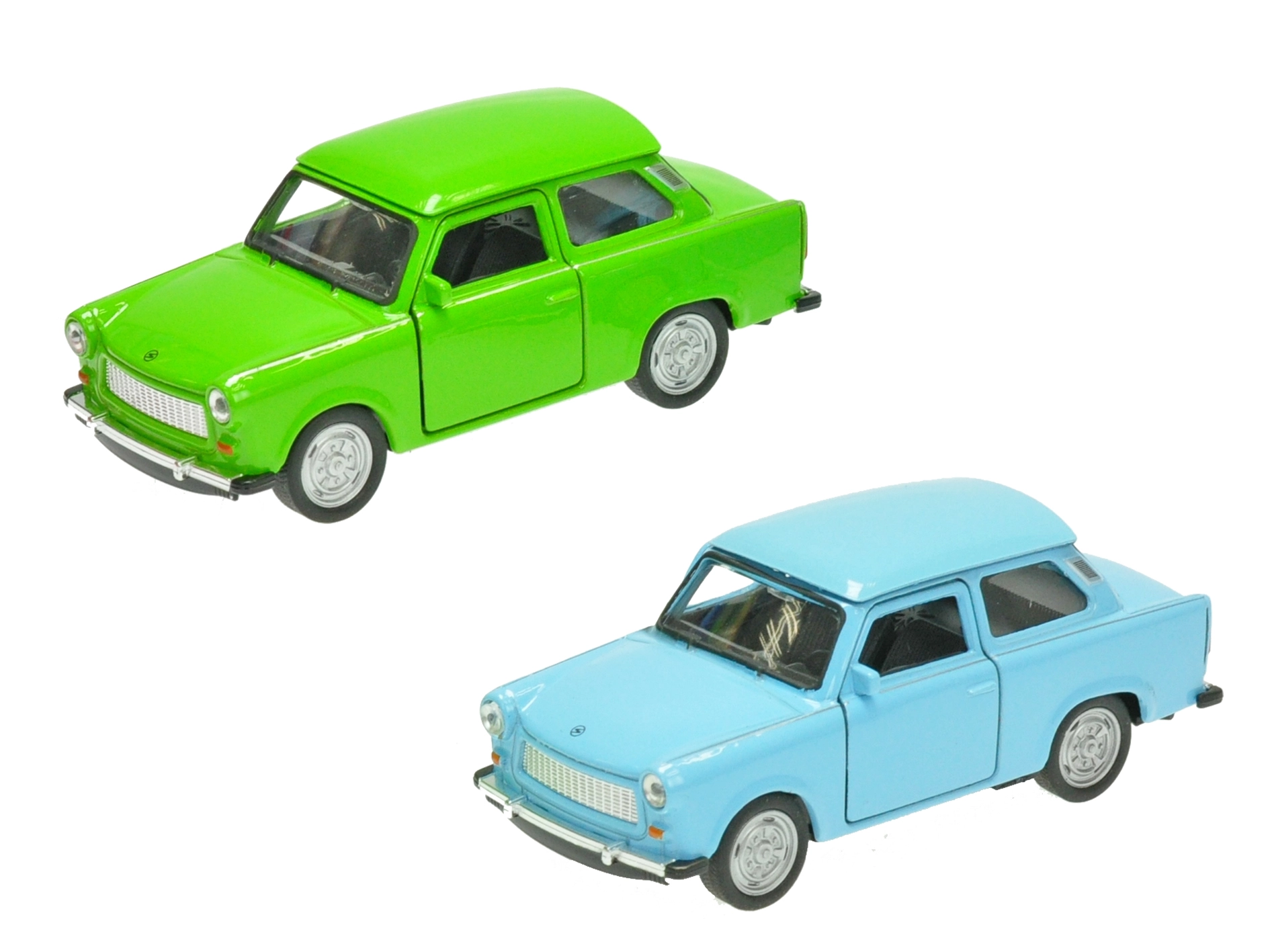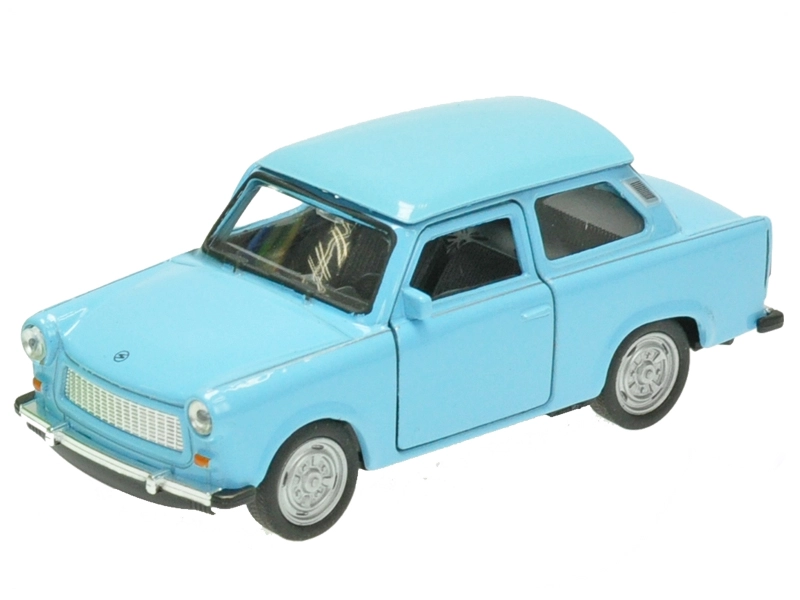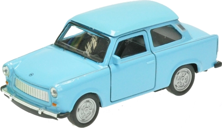Podroben kovinski model legendarnega vozila TRABANT 601 znamke Welly v merilu 1:36 bo navdušil otroke in zbiratelje. Ponuja odpirajoča se vrata, vzvratni navijalni (pull-back) mehanizem za zabavno vožnjo ter trpežno izdelavo iz kovine in plastike. Dolžina modela je 11 cm, na voljo pa je v modri, zeleni in beli barvi. Primerno od 3 let.