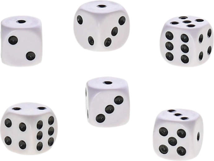 Praktičen komplet igralnih kock je idealen za družinske in družabne igre. Standardna velikost 16 mm zagotavlja udobno metanje in dobro berljivost pik. Zaradi kompaktne embalaže se kocke zlahka prilegajo v žep ali nahrbtnik, zato so popolne za na pot.