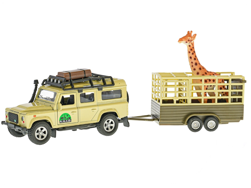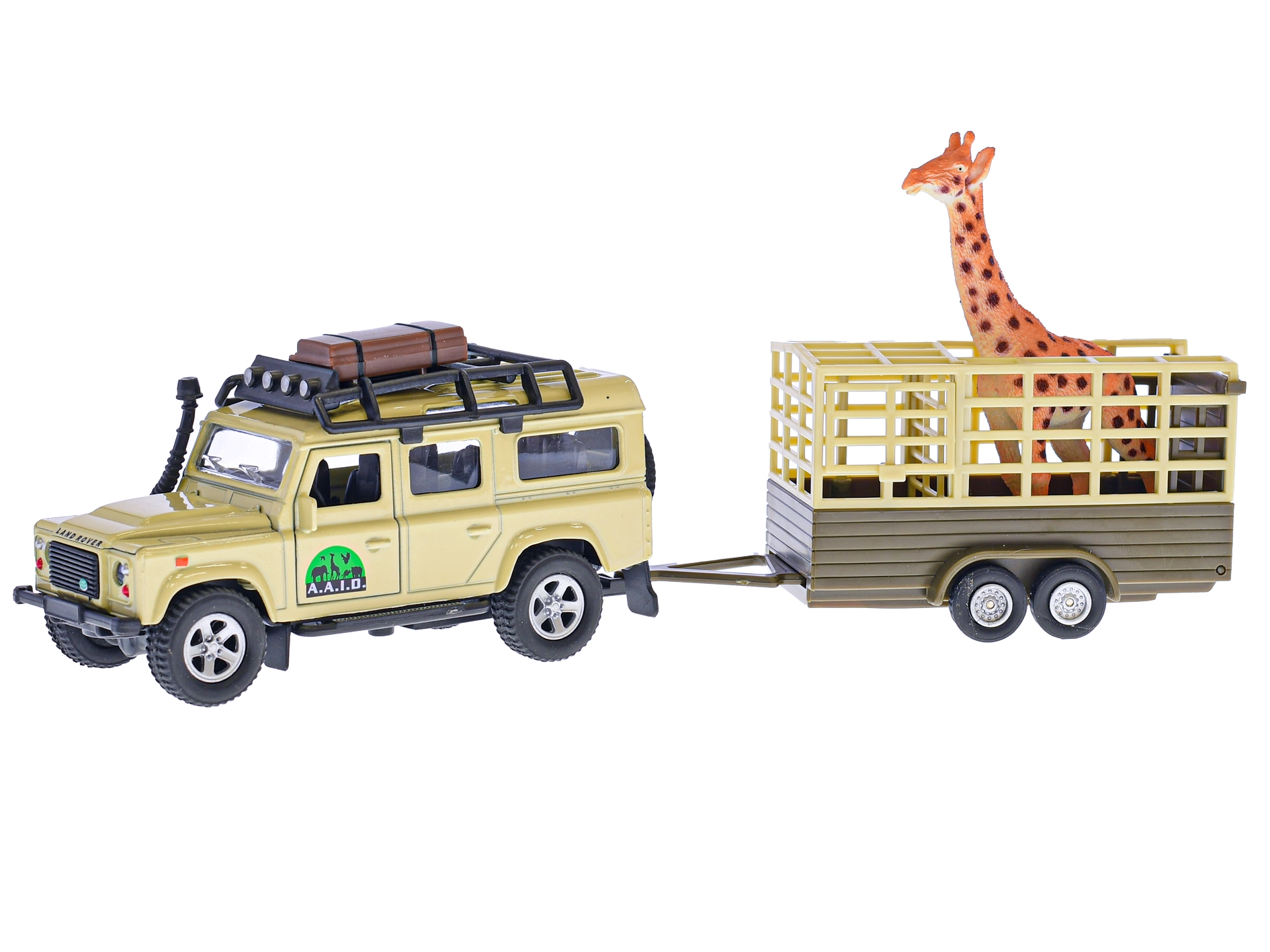 Ta realistični komplet bo navdušil male ljubitelje živali in avtomobilov. Kovinski model LAND ROVER DEFENDER z dovršeno izdelavo in funkcionalnim povratnim pogonom zlahka vozi po gladki površini, prikolico pa je mogoče kadarkoli odklopiti in znova priklopiti. Figurico žirafe lahko otroci prevažajo v prikolici in ustvarjajo svoje safari zgodbe.