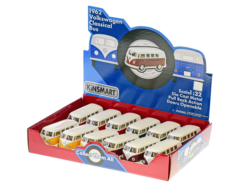 Natančni detajli karoserije, dvodelno vetrobransko steklo in izrazit logotip VW v vašo zbirko ali otroško igro prinašajo zvest videz ikoničnega mikroavtobusa.