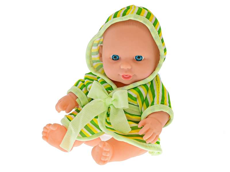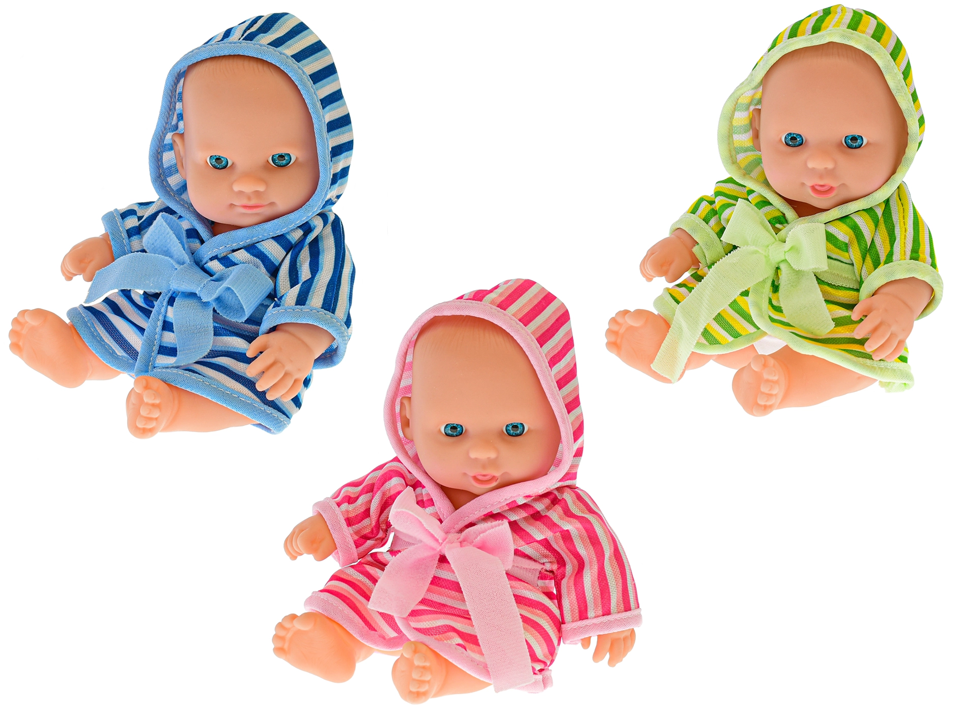 Na voljo so tri privlačne barve kopalnih halj – modra, zelena in rožnata – tako da si otroci lahko izberejo tisto, ki jim je najbolj všeč. Realistične obrazne podrobnosti in gibljivi udi spodbujajo kreativno in skrbno igro doma in na poti.
