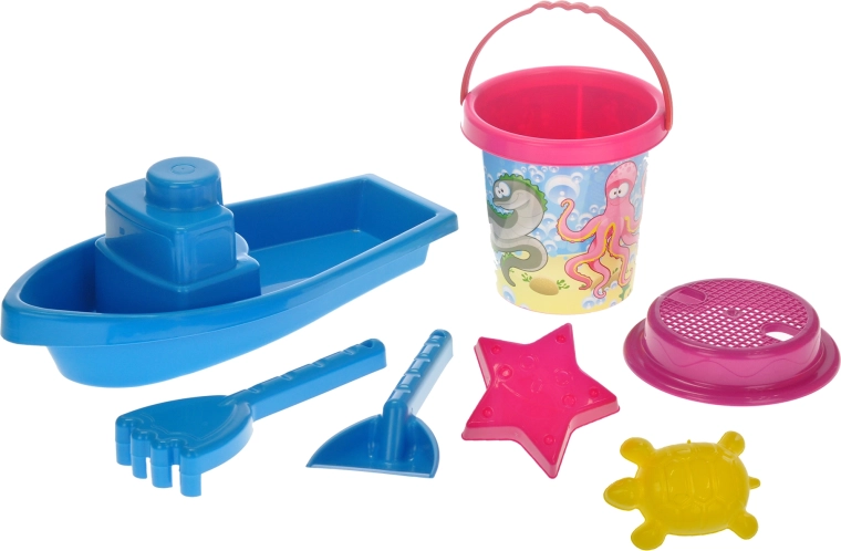 - 7 (vederček, lopatka, grabljice, sito, modelček, čolniček)