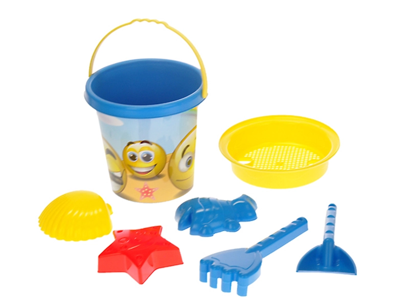 Vesel komplet za pesek Smajliči bo razveselil male graditelje s pisanimi barvami in igrivim motivom. Vsebuje 7 delov – vedrce, sito, lopatko, grabljice in 3 modelčke smeškov. Izdelan je iz kakovostne, zdravju neškodljive plastike za varno igro in dolgo življenjsko dobo. Deli so lahki in preprosti za uporabo, idealni tudi za najmlajše otroke. Praktična mrežica olajša prenašanje in shranjevanje. Primerno od 10 mesecev naprej.