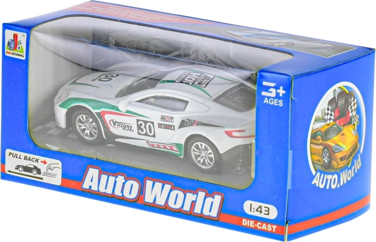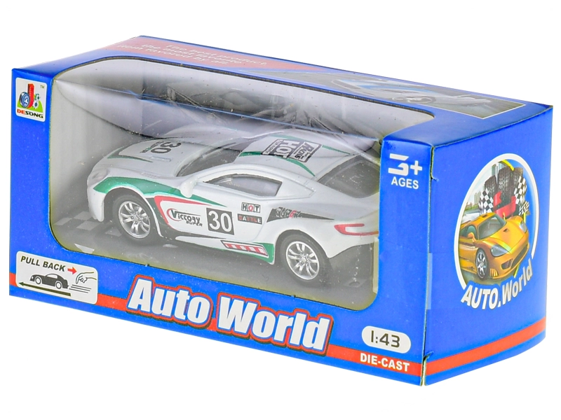 Uživajte v dinamični zabavi s kovinskim dirkalnim avtomobilčkom v merilu 1:43. Mehanizem vzmetnega pogona zagotavlja akcijsko vožnjo in ponovno igranje, medtem ko trdna kovinska karoserija prenese vsakodnevne pustolovščine.