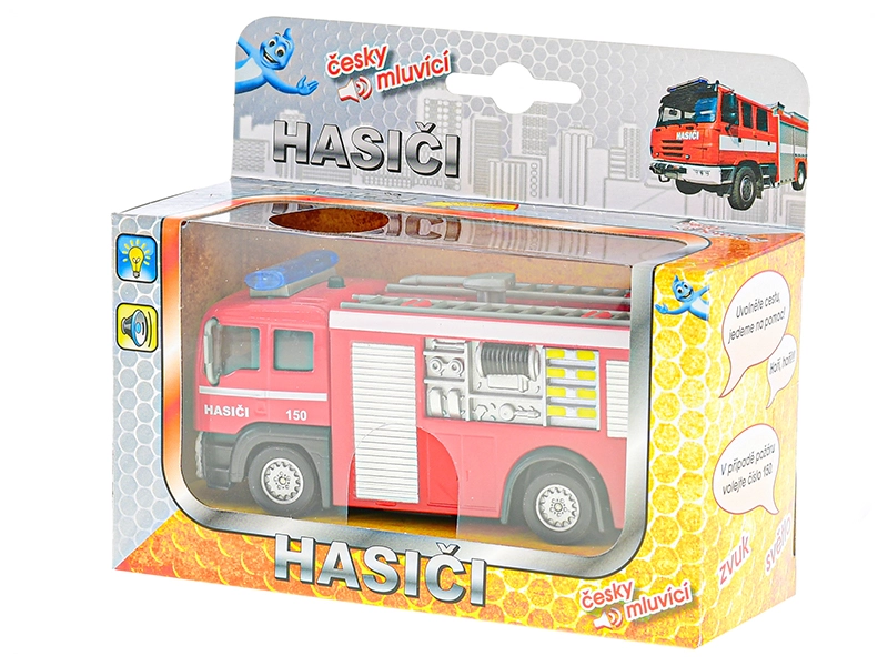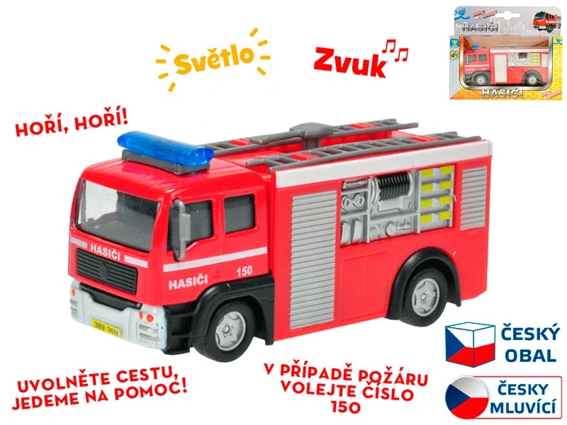 Majhen, a akcijski gasilski avto je idealna igrača za sobo in na pot. Kovinska karoserija zagotavlja vzdržljivost, zvočne in svetlobne funkcije pa vsako vožnjo spremenijo v napeto reševalno akcijo. Zahvaljujoč češkim frazam se otroci učijo prepoznavati nujne situacije in pravilno številko za klic v sili 150.
