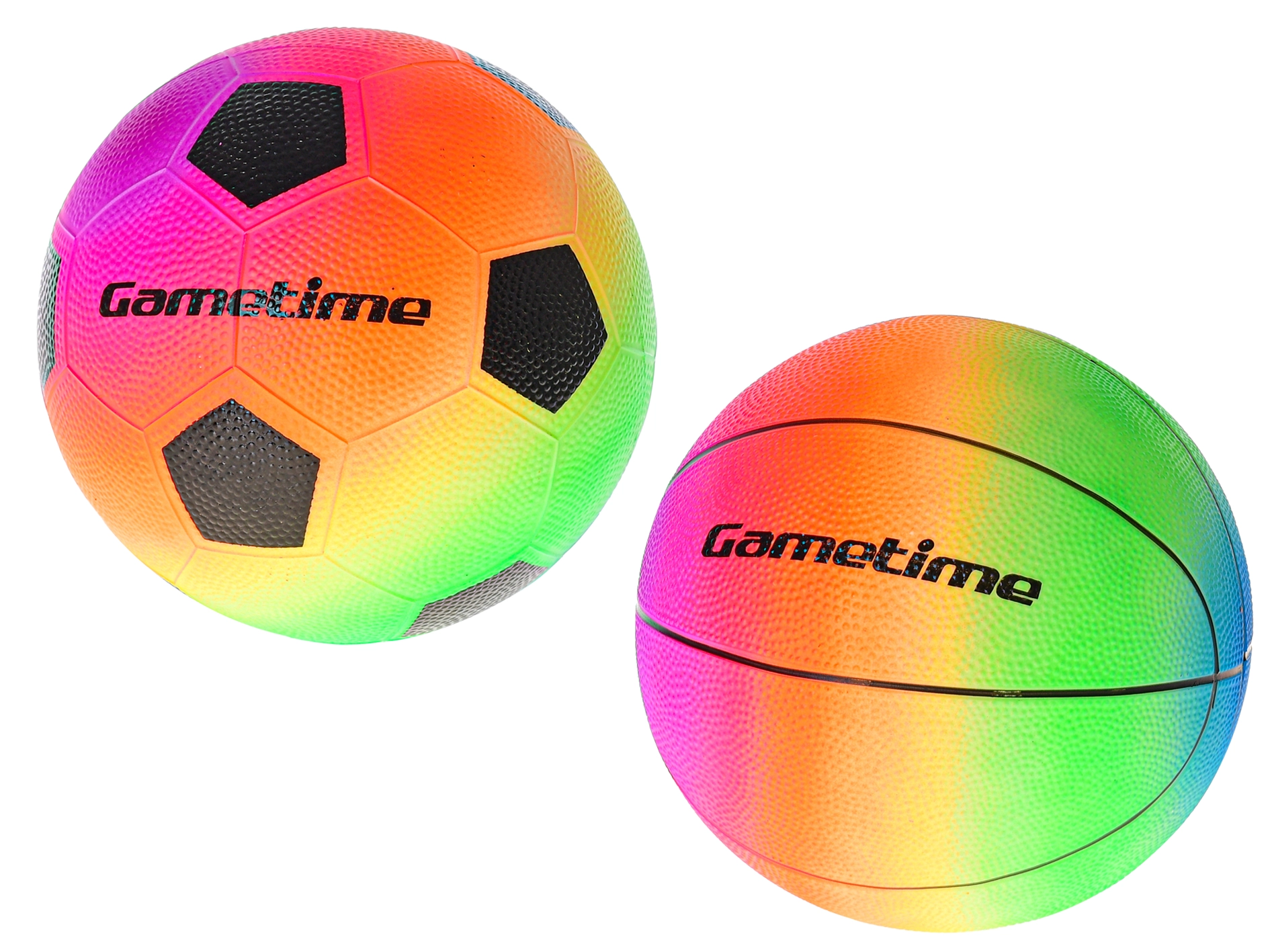 Pridobite nogometno in košarkarsko žogo v enotnem mavričnem slogu – idealno za raznoliko in zabavno igro kjerkoli.