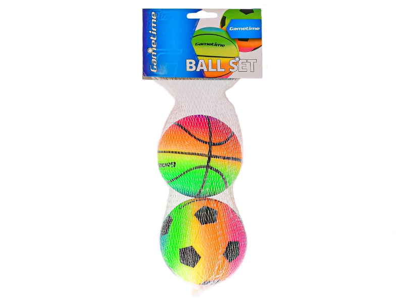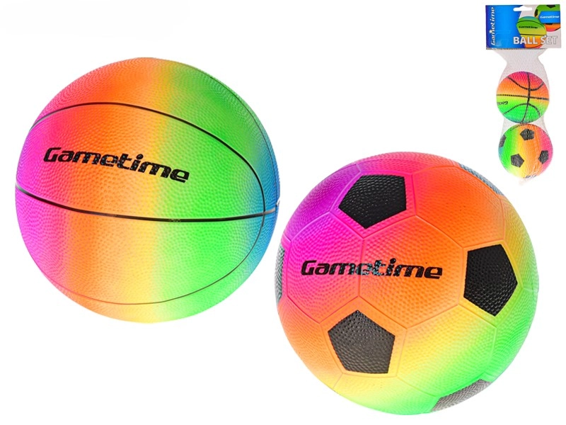 Komplet dveh barvitih žog premera 10 cm – nogometne in košarkarske – za neskončno zabavo doma in na prostem. Mehke in enostavne za prijem, idealne za otroke. Svetle mavrične barve povečujejo vidnost in vabijo k igri, kompaktna velikost pa je popolna za majhne roke.