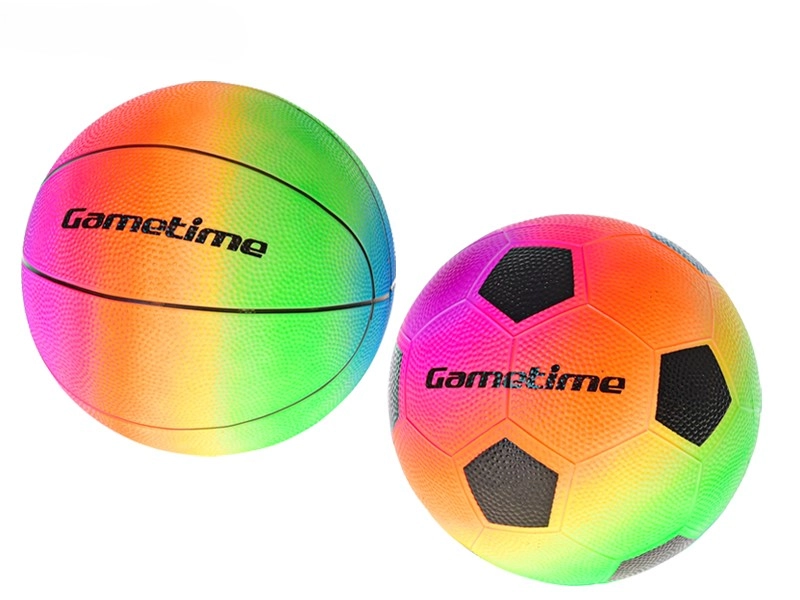 Izbirajte med košarkarsko in nogometno žogo v mavrični izvedbi – idealno za rekreativno igro na prostem in ob vodi.